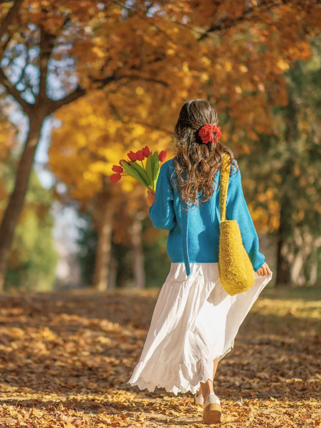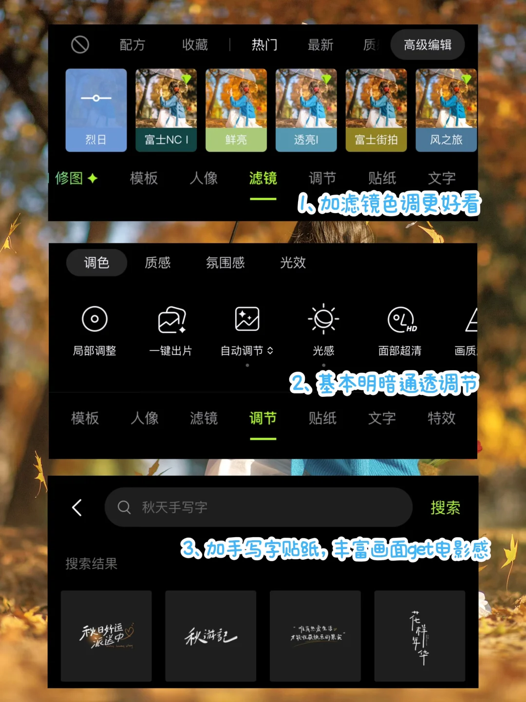 秋天公园落叶电影感拍照|附滤镜调色教程