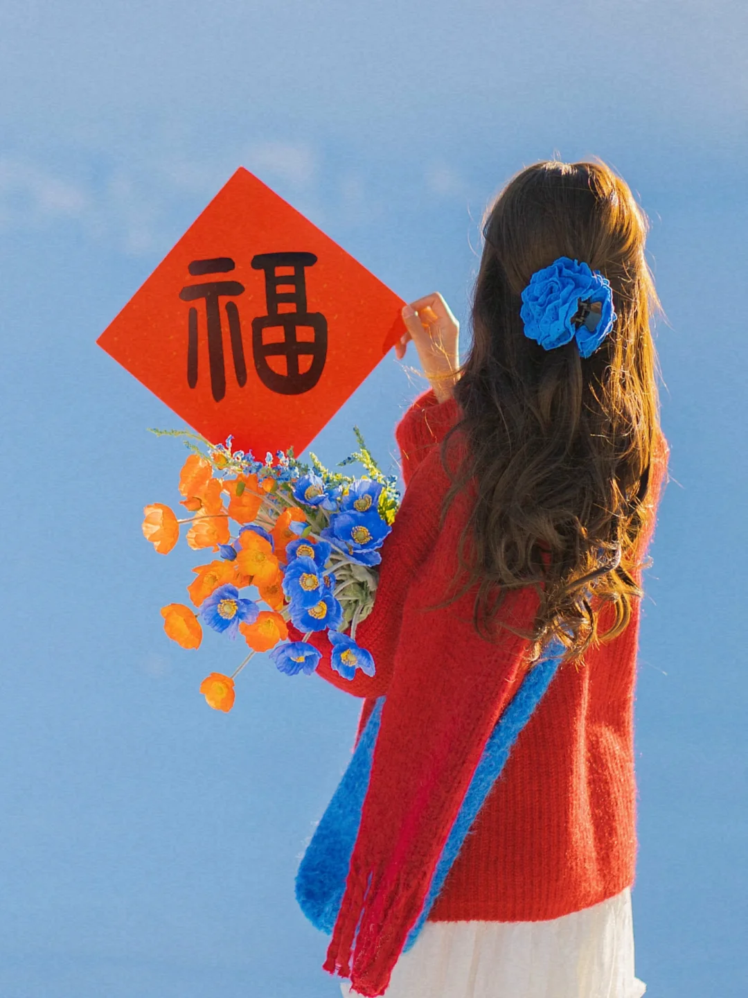 拿上新年福字,即使不露脸,