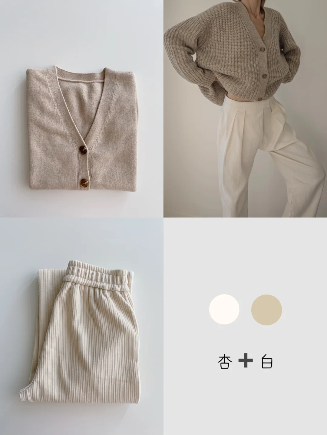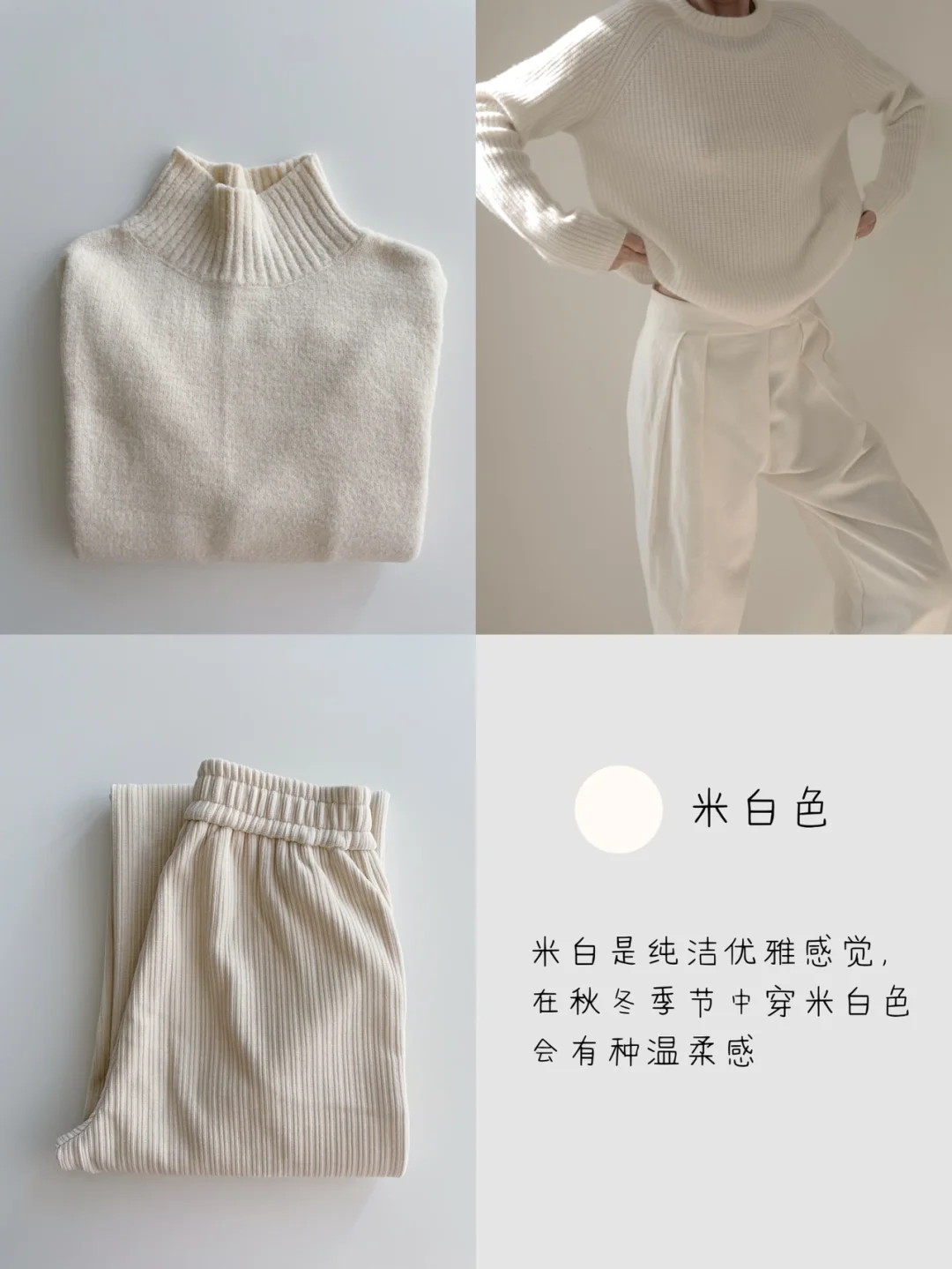 全身米白是我秋冬会尝试的第1⃣️种色系搭配。米白是纯洁优雅感觉,我特别喜欢白色的一切,从我的笔记中都能感受到吧。米白色在秋冬季节中会有种温柔感,穿米色和白色的搭配,过着简朴却又舒适的日子,不是很美好吗?