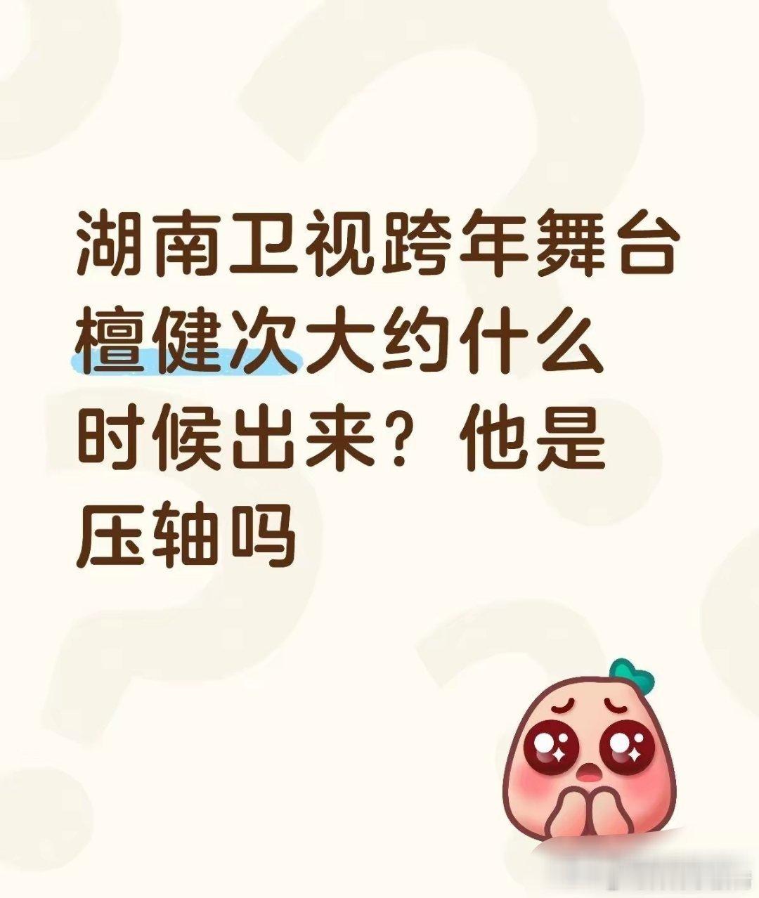警告⚠️:你的心肝会被绑架,从头到尾…… 明晚19点30分就是湖南卫视的跨年演唱会了,很多小炭火迫不及待想看到檀健次的新歌舞台,都关心他什么时候出场,会不会是压轴? 依我看,他压轴的可能性不大。但根据以往的经验来说,开场为了吸引眼球肯定会有他,一般是好六团成员一起出来!中间游戏互动会有他,个人舞台和合作舞台会有他,时间大概率靠后! 主办方🥭会把他从头到尾全程放在那里,时不时让他出现在镜头里,就是故意吊着你,反正“人质”在手,天下我有!让你欲罢不能!跨年倒计时也会有他,他会像吉祥物一样随时被cue到!