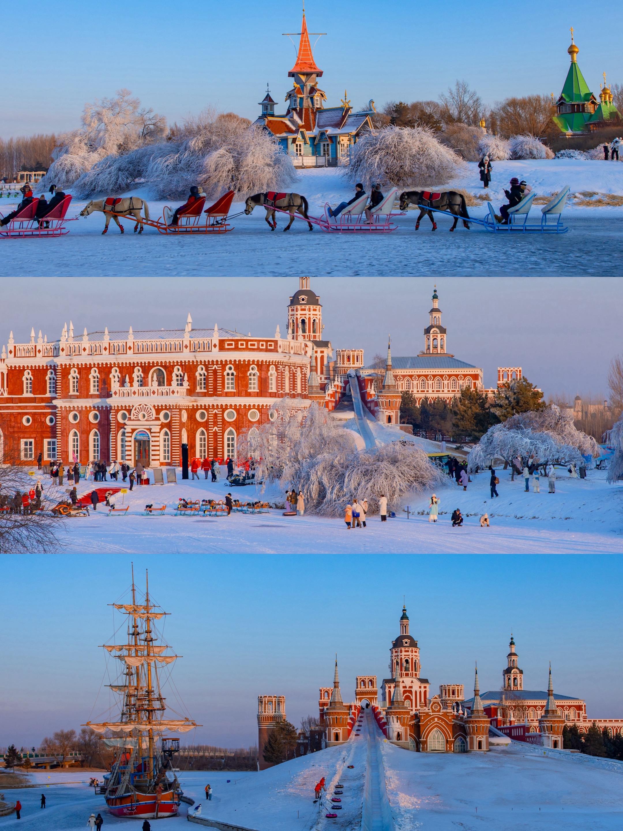 为了这18张照片,我特地飞了一趟哈尔滨❗。没有一座城,能赢过冬天的哈尔滨😭 索菲亚教堂的钟声裹着碎雪飘来 伏尔加庄园的城堡被白雪覆盖 松花江冻成现实版冰河世纪 整座城市坠入浪漫的冰雪童话 如果你是第一次来哈尔滨 赶紧收藏这份4天3夜保姆级攻略 直接抄作业📝 · ✅Day1:音乐长廊雪人-外滩雪人码头-钻石海-阳明滩大桥 ▪️音乐长廊雪人:巨型雪王太萌了,合照巨出片 ▪️外滩雪人码头:步行可达!公园外长椅就是绝美机位 ▪️松花江钻石海:日落冲! 一颗颗大冰块像碎钻 ▪️阳明滩大桥:蓝调时分去! 氛围感直接