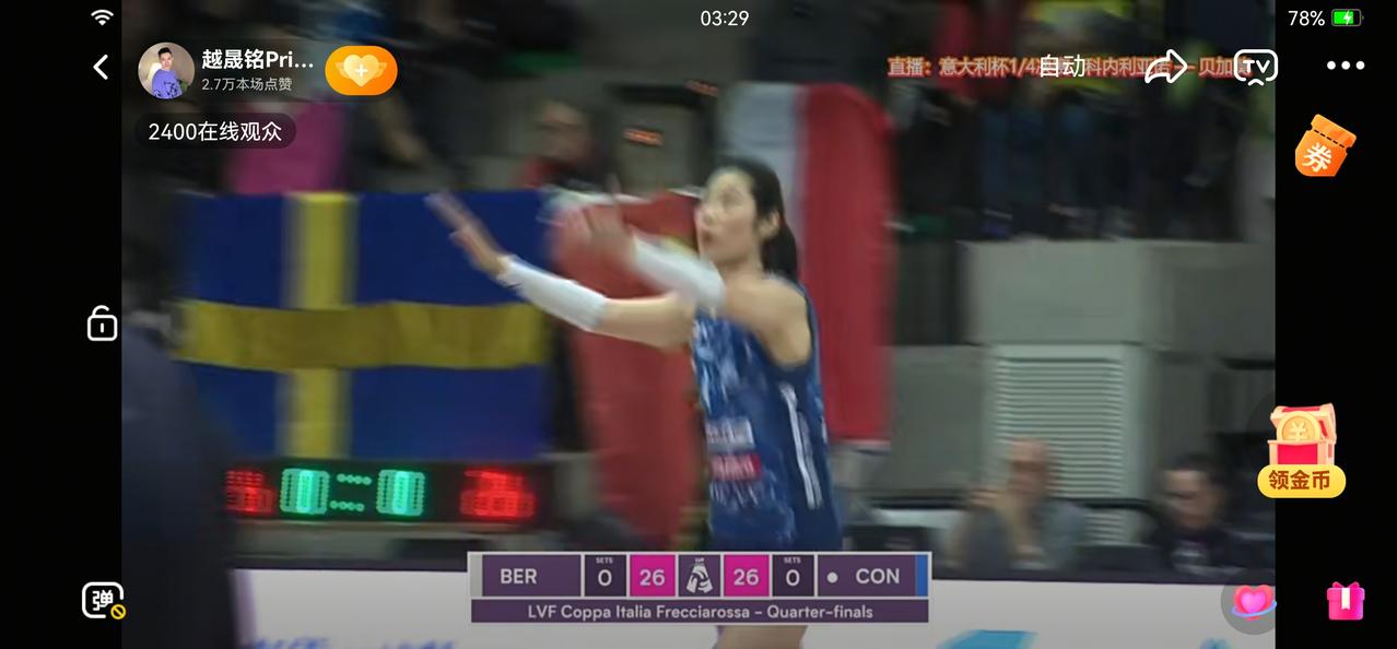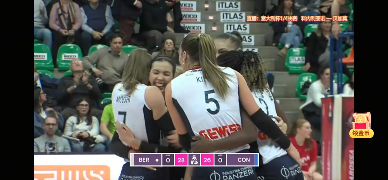 在今天凌晨结束的意大利杯1/4决赛的一场比赛中,朱婷效力科内利亚诺在先输一局的情况下连扳三局,以3:1战胜贝加莫挺进四强,本场比赛,此前状态低迷的科内主要得分手哈克找到了进攻的感觉,发挥出色,帮助科内获得最后的胜利,她也获得本场的MVP。科内在半决赛的对手是诺瓦拉,实力也很强。