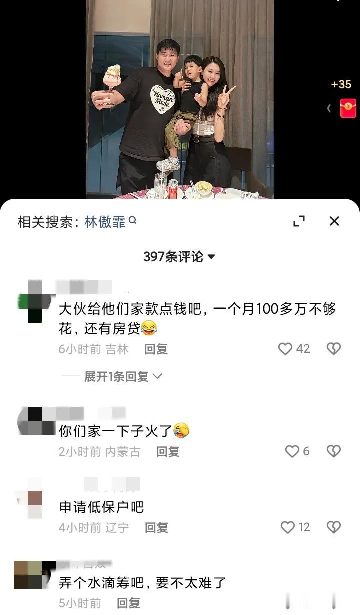 闫学晶这次有点不够体面,她关闭评论后,儿媳许徐梦迪的评论区遭殃了。 这一次闫学晶翻车很意外,骂她本是农村人,却脱离了农村,不知天高地厚。 多个网友转发闫学晶在直播间的视频,被举报投诉,称大伙恶意剪辑。 大家还坐等闫学晶道歉呢。 徐梦迪于12月23日,晒2岁10个月儿子照片,没想到评论区沦陷了,她婆婆评论区关闭了,其老公林傲霏设置为私密账号,大家只有去的评论区。 只能说嫁入豪门,要有付出与取舍。 闫学晶的家庭确实算得上豪门,二婚老公马明东是鞍山富豪,从事房地产投资。 得饶人处且饶人,徐梦迪没有发声,与她无关。 此外,闫学晶也只是实话实说。 徐梦迪的父母家世,网友没有任何信息,只是在结婚的时候露过面。 而徐梦迪本人毕业于上海音乐学院,长得非常高挑漂亮。 闫学晶也多次夸赞儿媳漂亮,找儿媳就是要找漂亮的,不然影响下一代的长相。 他的孙子恩仔长得像父亲,笑起来眉眼汪汪,非常可爱,但身上也有母亲的优点。 闫学晶曾32岁儿子,一年拍一部电视剧,只能赚几十万,这也是事实,只要进了剧组啥事也做不了。 但是几十万不够一家三口,在北京一年的开销,他们的小家要有百八十万才能运营。 言下之意就是儿子要直播带货呗,另外还透露,儿媳搞音乐剧收入也很低。 两个孩子不早就直播带货了吗? 一年压根也不是几十万的收入呀! 明星家庭的开销与普通人无法相提并论。 因此,闫学晶应该找同阶层的人去聊天,而不是在直播间向广大网友吐槽。