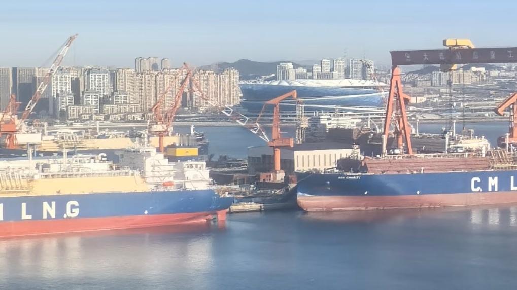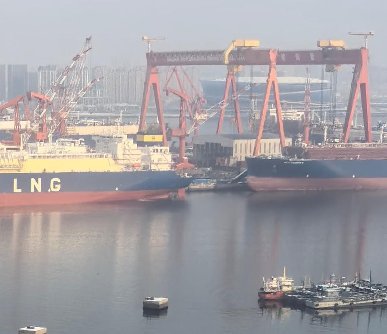 北方某地004近照 [灵光一闪] 机库底板装上了,搭载进度极快![666] 等明年初这两艘LNG船交付后,就能看到004的侧面全貌了 [酷]