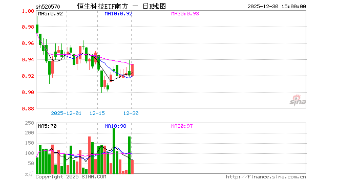 12月30日,恒生科技ETF南方(520570)涨1.52%,成交额6295.08万元。当日份额增加600.00万份,最新份额为21.00亿份,近20个交易日份额增加10.49亿份。最新资产净值计算值为19.61亿元。