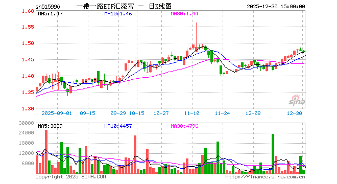 12月30日,一带一路ETF汇添富(515990)跌0.14%,成交额28.82万元。当日份额减少100.00万份,最新份额为5935.02万份,近20个交易日份额减少200.00万份。最新资产净值计算值为8745.25万元。