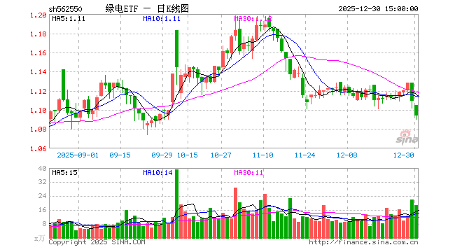12月30日,绿电ETF(562550)跌1.35%,成交额2035.71万元。当日份额增加550.00万份,最新份额为2.61亿份,近20个交易日份额增加1850.00万份。最新资产净值计算值为2.84亿元。