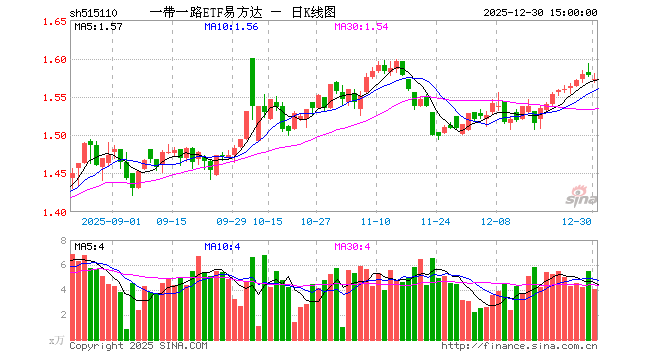 12月30日,一带一路ETF易方达(515110)跌0.32%,成交额636.23万元。当日份额减少100.00万份,最新份额为2.17亿份,近20个交易日份额减少200.00万份。最新资产净值计算值为3.42亿元。