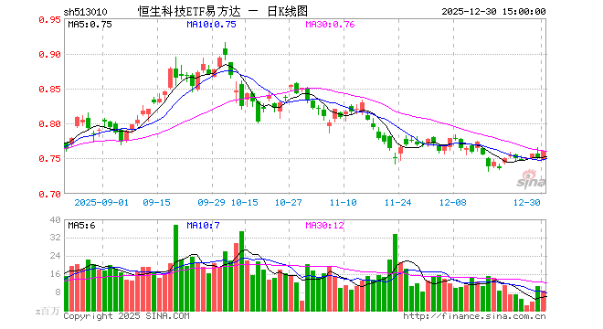 12月30日,恒生科技ETF易方达(513010)涨1.20%,成交额6.61亿元。当日份额增加1.16亿份,最新份额为353.61亿份,近20个交易日份额增加30.37亿份。最新资产净值计算值为268.96亿元。