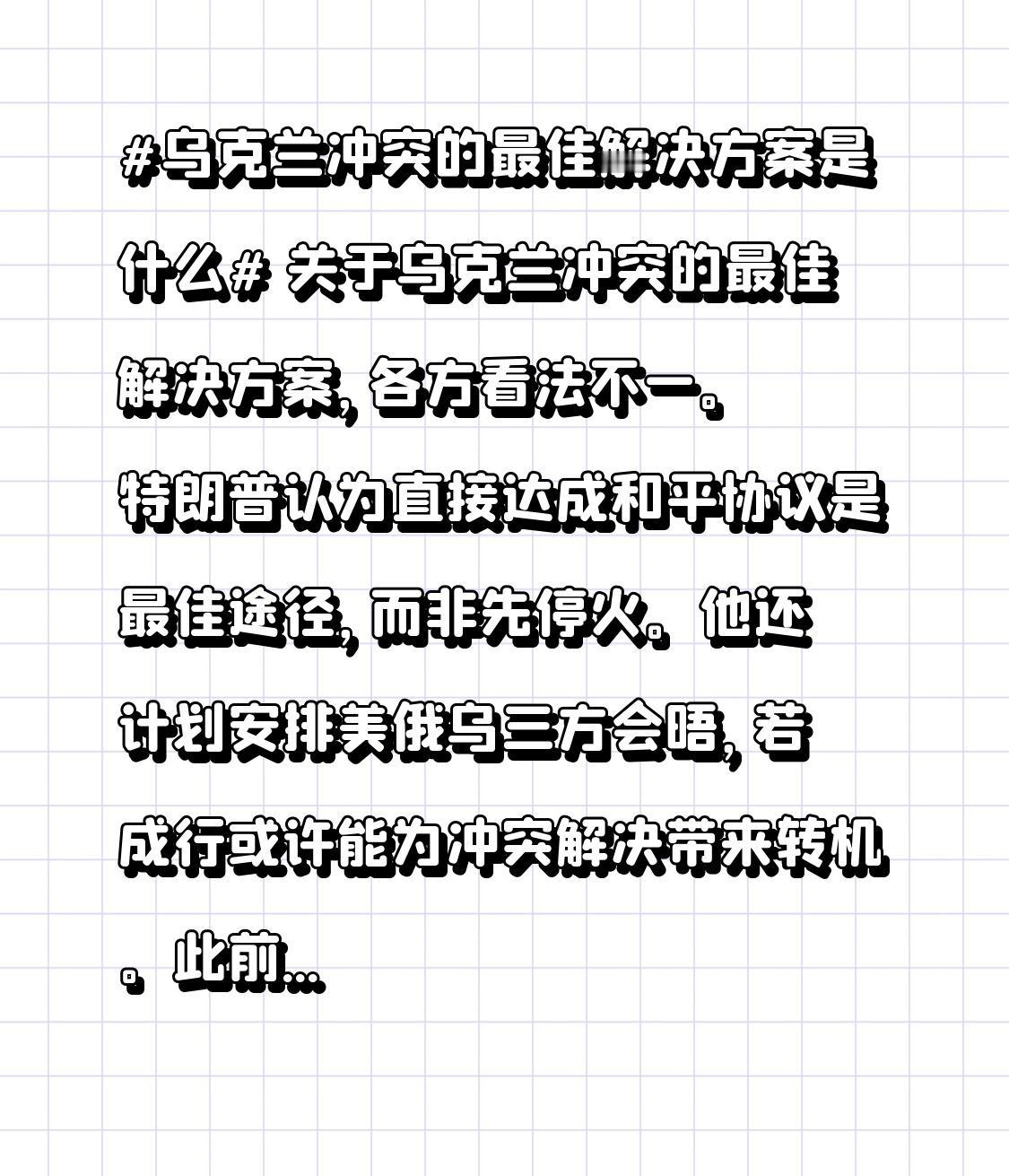 关于乌克兰冲突的最佳解决方案,各方看法不一。特朗普认为直接达成和平协议是最佳途径,而非先停火。他还计划安排美俄乌三方会晤,若成行或许能为冲突解决带来转机。 此前,泽连斯基宣布了乌版“20点和平方案”,可在这之前美国就有了“28点和平方案”,而且美国推动方案时没和欧盟协商,却和俄罗斯多有接触,让欧盟和英国有被出卖之感。泽连斯基也表示乌方和平方案要先和美国商量,欧洲虽给乌大量援助,此刻却被晾在一边。或许只有各方放下利益纠葛,真诚对话协商,才有望真正解决冲突。