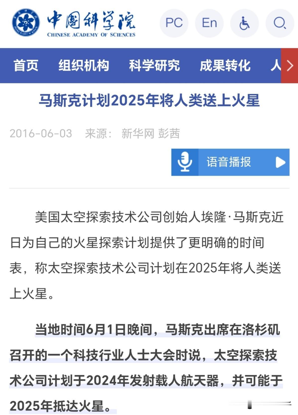 留给马斯克和日本的时间不多了,2025年最后一天了,不知道他们吹过的牛什么时候兑现呀。 1、2006年,日本大张旗鼓的宣布月球基地计划,号称中国的航天技术远远落后于日本,日本将在2025年在月球建立基地。 2、2016年的时候,马斯克为了拉到投资,防止SpaceX破产,到处吹牛要在2025年把人类送上火星。 现在是2025年最后一天了,日本要不要重新吹一下牛。反正马斯克已经更新吹牛了,号称在2028年—2030年之间把机器人送到火星,压根不提把人送到火星这件事了。 虽然NASA和中国航天之前已经把机器人送到火星了,但不妨碍马斯克继续吹牛。