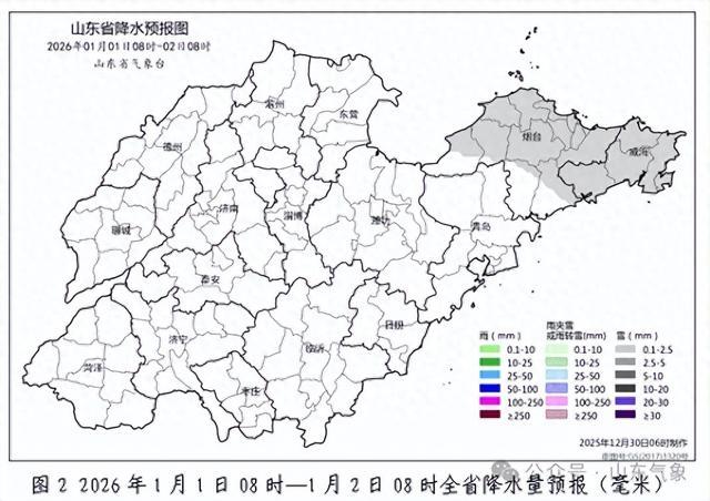 2026年1月1日夜间到2日白天,烟台北部和威海北部天气阴局部有小雪转晴,其他地区天气晴到少云。半岛地区北风4~5级阵风6~7级减弱到3~4级,其他地区北风转南风3~4级。