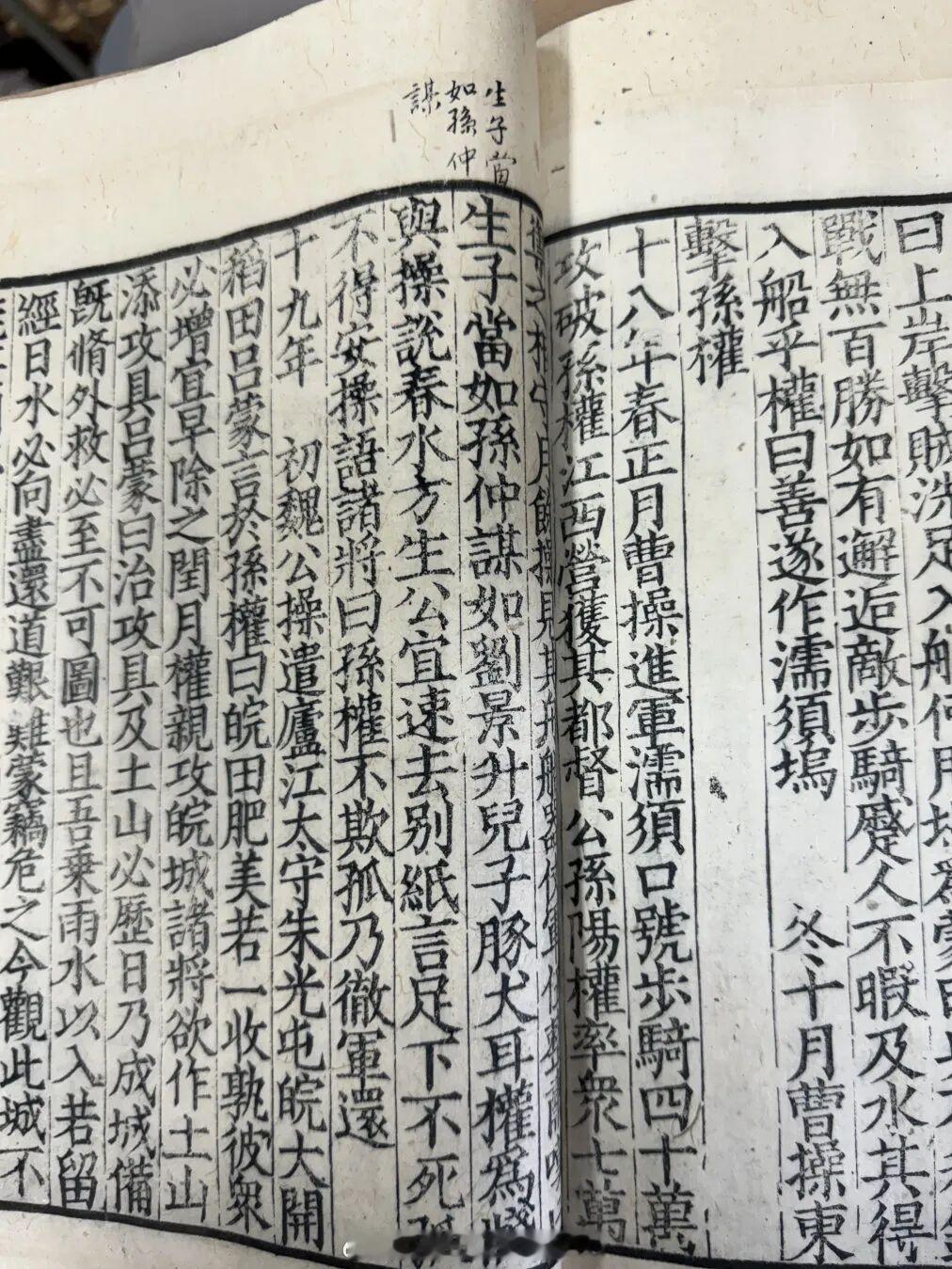 攟古继美——上海图书馆藏苏州潘氏典籍文献展重磅展品导赏《通鉴纪事本末》《通鉴纪事本末》是中国第一部纪事本末体史书,由南宋史学家袁枢编纂。全书共四十二卷,以司马光的编年体通史——《资治通鉴》为蓝本,选取了战国三家分晋至五代周世宗征淮南间的历史事件独立成篇。这种以“事件”为中心的史书,兼具史料价值和文学可读性,因而广为流传。在上海图书馆年度馆藏大展“攟古继美——上海图书馆藏苏州潘氏典籍文献展”中,展出了一本唐伯虎珍藏的宋刻本《通鉴纪事本末》。唐伯虎在读《通鉴纪事本末》时,遇到重要的历史节点,喜欢将原文部分语句直接抄出。在读到三国时期的精彩历史时,他的注意力也发生了有趣的转变,批注也变得生动了!在读到“曹操纂汉”时,“人中吕布,马中赤兔”的吕布被曹操所擒,希望刘备能为自己求情,奈何刘备反而提醒多疑的曹操。临死前吕布怒斥道:“大耳儿最叵信。”刘备天生耳朵大,唐伯虎写下了“大耳儿”的批注,仿佛他也觉得这绰号甚是有趣。(图2)更妙的是,唐伯虎在书中还发现了曹操的一句名言:“生子当如孙仲谋”。唐伯虎没有记的下半句是:“如刘景升儿子,豚犬耳。”意思是生儿子就应该像孙权一样,像刘表的儿子,就像猪狗罢了。三国时孙权率领七万士兵抵御曹军,双方相持了一个多月。曹操见孙权的舟船、器械、军队整齐严肃,才发出如此的感叹。(图3)这些批注透露出唐伯虎读书时的状态,他不是一味刻板地做学问,而是在享受阅读的乐趣。看到有趣的史料,也会像现代人看到好玩的梗一样,私底下默默“背梗”。