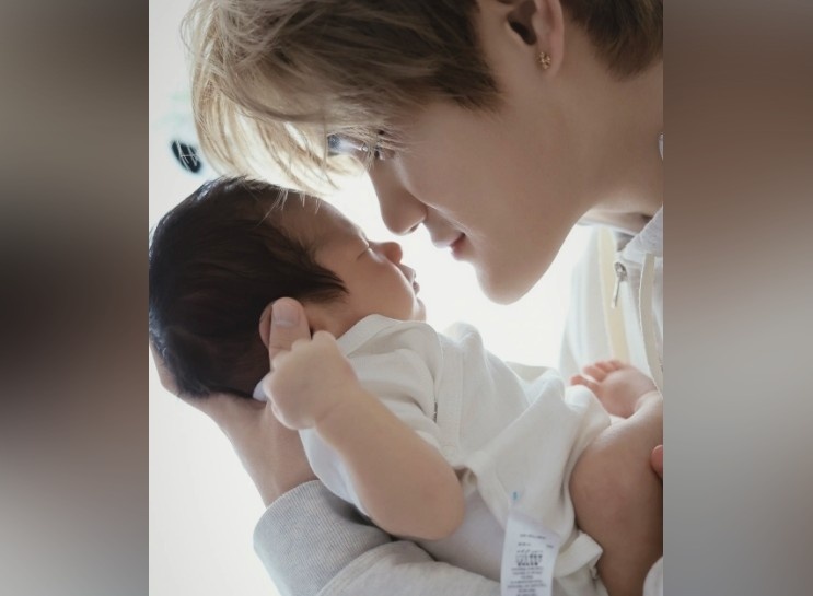 刘祝润在社媒晒出了手捧孩子的照片并配文写道:“今年收到最珍贵的礼物,跨年阵容升级。”