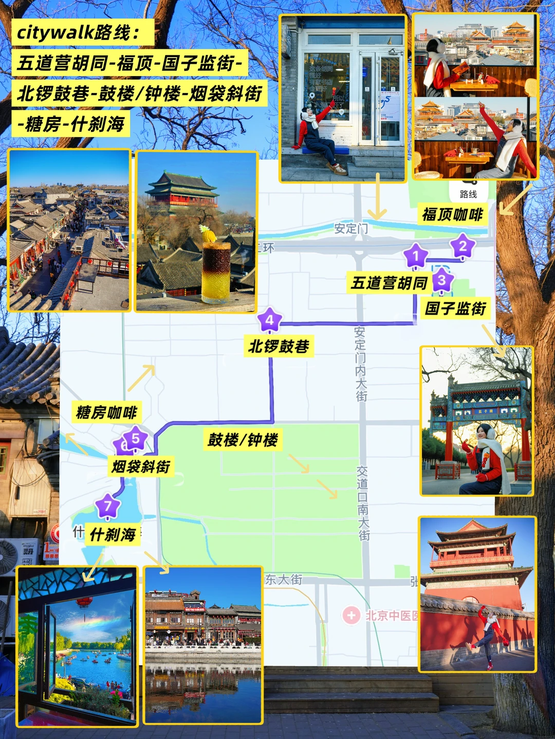 雍和宫➡五道营胡同➡箭厂胡同➡国子监➡北锣鼓巷➡鼓楼➡烟袋斜街➡什刹海