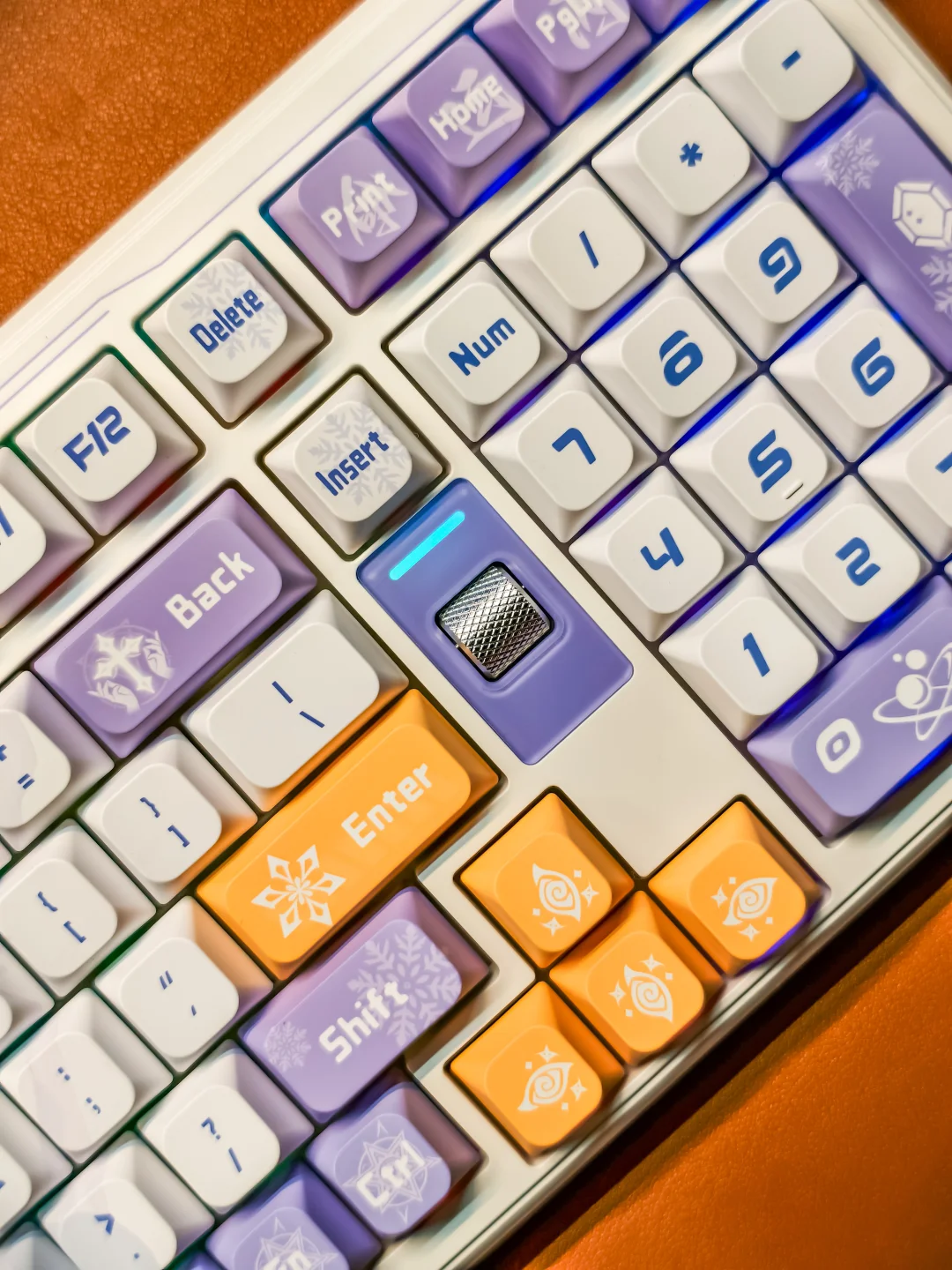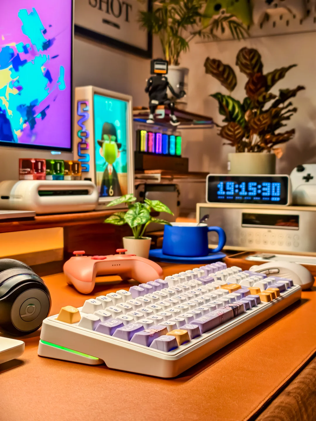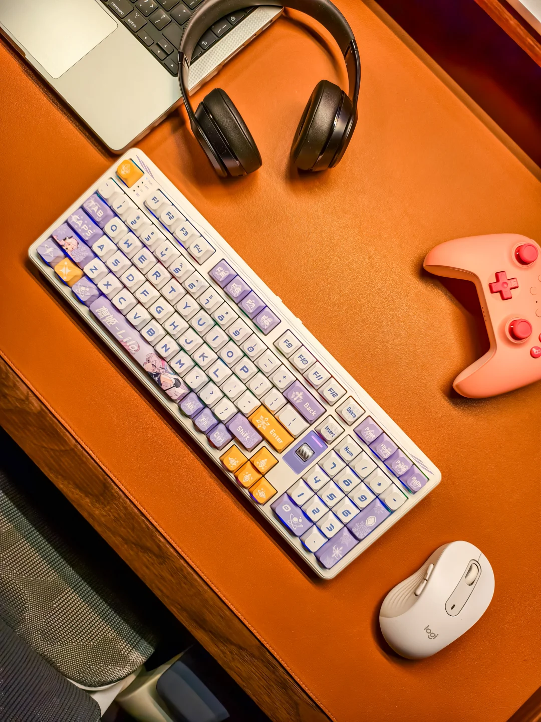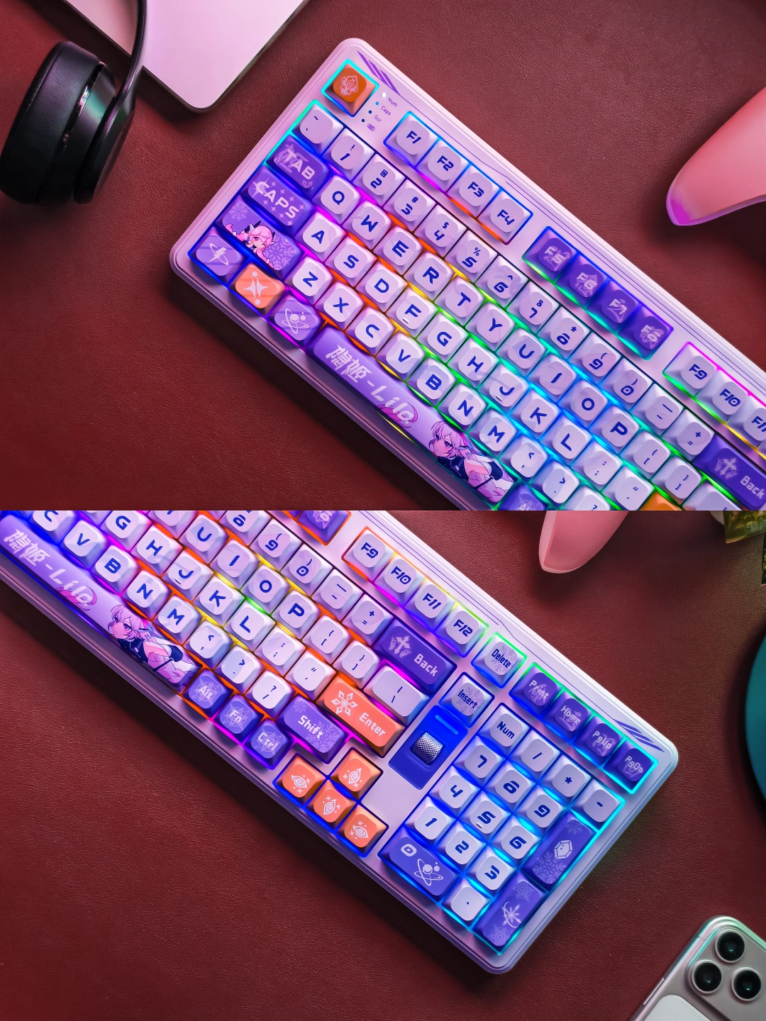 为自己的一份欢喜“添砖加瓦”。选择了七彩虹青羽98Pro游戏机械键盘,梦幻又高级的紫白色主调,搭配上1600万可自定义的幻彩RGB灯带,每一处细节都透着设计师的巧思。