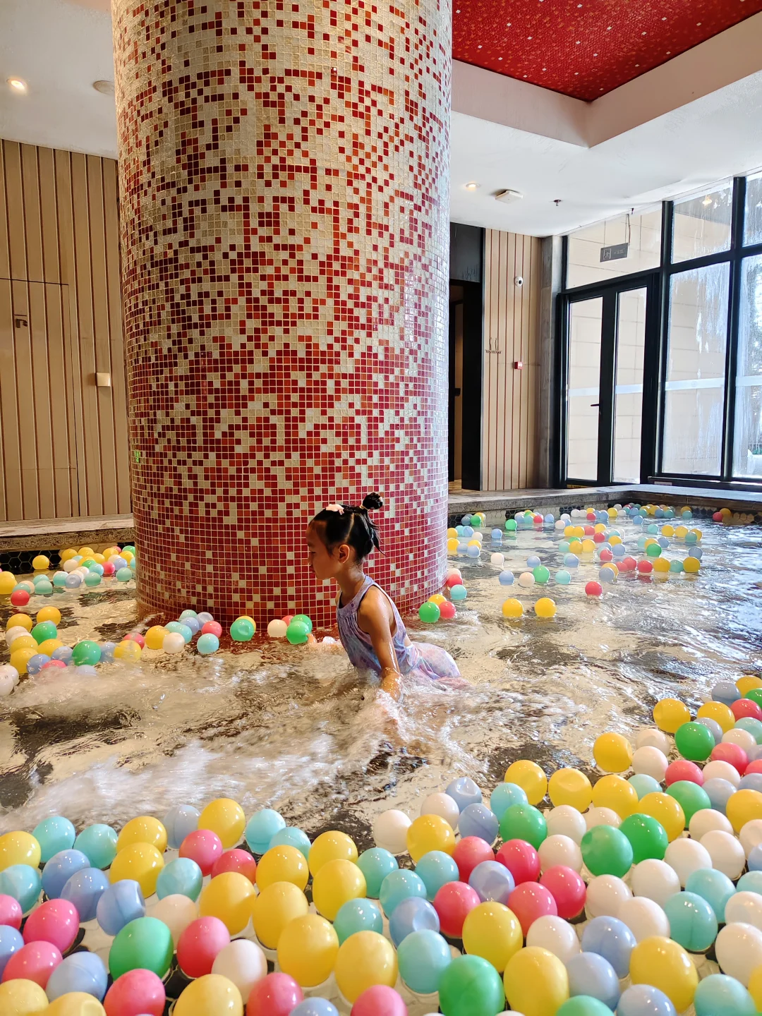 周末天气好棒,带娃到汤山矿坑公园玩,在附近发现一个适合一家人躺平放松的好去处——汤山涵田·臻温泉。