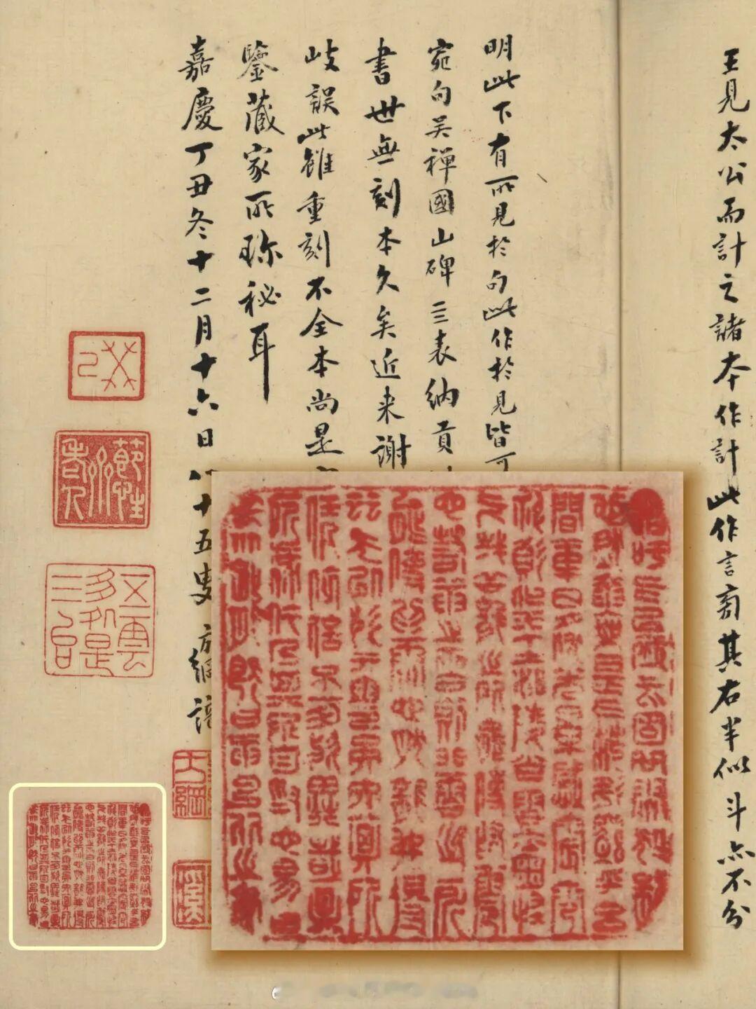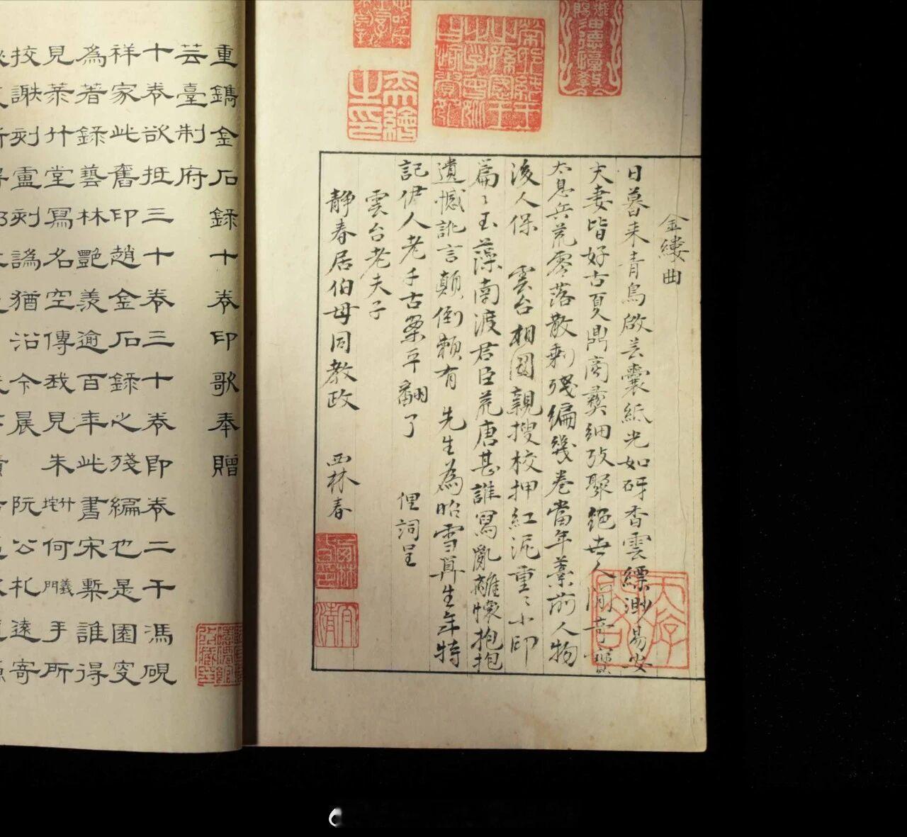 攟古继美——上海图书馆藏苏州潘氏典籍文献展重磅展品导赏南宋龙舒郡斋刻本《金石录》赵明诚,字德父,山东诸城人,出身仕宦之家;李清照,号易安居士,杰出的婉约派女词人。赵明诚与李清照热衷于收藏古物,共同搜求天下金石书画,勘校整理,悉心研究。赵明诚用二十年踏访山河,著成《金石录》三十卷,却叹“金石之固,犹不足恃”。建炎三年(1129),赵明诚病逝于赴任途中,而李清照在国破家亡的流离中,将丈夫遗稿整理成书,并写下字字泣血的《金石录后序》,详述成书之不易与夫妻之情深。作为金石学的集大成之作,《金石录》以录目与跋尾的独特体例,收录了北宋以前的传世的钟鼎碑版铭文,并发扬了以金石证史的治学传统,它对于史学、考据学、文献整理和金石书法的研究,至今仍具有重要的参考价值。残宋本《金石录》(潘祖荫滂喜斋旧藏)作为上海图书馆的镇馆之宝之一。宋版《金石录》在元明几近湮没,直到明末,一部仅存十卷的残本重现江南——那时宋版书日趋稀少,逐渐被藏家珍视。冯文昌得到此书后欣喜若狂,镌“金石录十卷人家”印,“长笺短札,帖尾书头,每每用之”。后来,鲍廷博、江立、阮元、韩泰华、潘祖荫等先后递藏此书并步趋前贤,也镌刻“金石录十卷人家”印章,成就了一段艺林美谈。