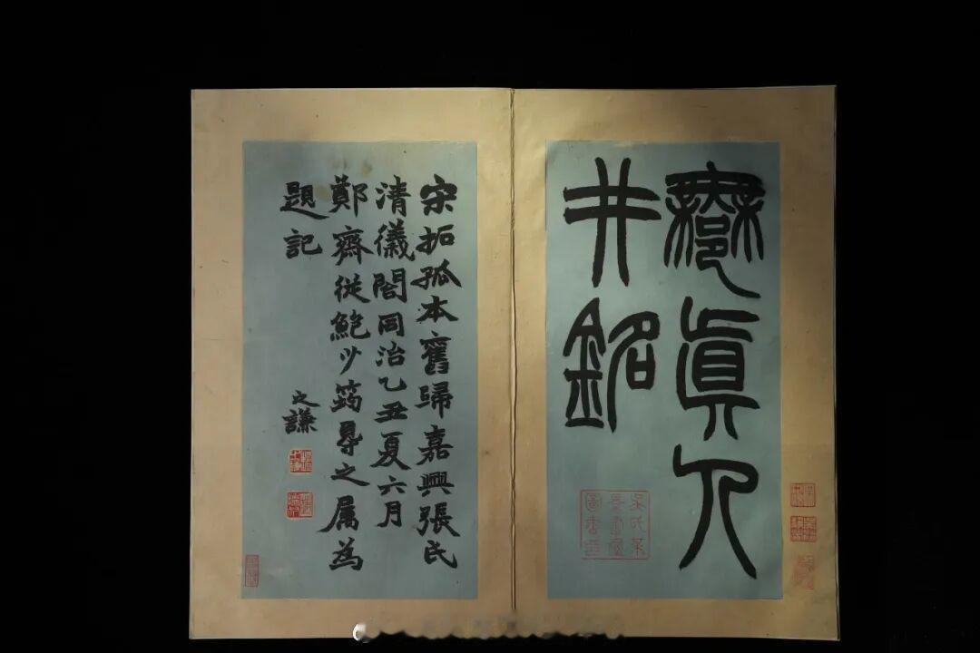 攟古继美——上海图书馆藏苏州潘氏典籍文献展重磅展品导赏《许真人井铭》宋拓孤本《许真人井铭》所记载的是许真人修真得道的故事。据说东晋时有位许长史(许谧,字思玄,东晋人,世人尊称其为许长史),年少的时候,以博学而闻名,儒雅清素,博学有才章,初入仕途的官职是郡主簿,后来官至散骑常侍。这位许长史后来归隐茅山,遍访德高望重的名者贤人,寻真修道,为道教上清派第三代宗师,宋宣和年间敕封为“太元广德真人”,道教中尊为上清真人,世称“许真人”。在元和元年的时候(366),许长史在茅山玉晨观东南的雷平山营造宅所,曾亲手栽植圆柏树。后来就在宅子的南面开凿了一口井,就是所谓的“许真人井”。后来宅院长久没人居住就荒废了,只剩下这口井在还留在观中。南唐时徐铉过访茅山的时候,瞻仰遗迹,感慨万分,于是作井铭一篇,并将篆书刻在井栏上,篆文共计七十四字。上海图书馆馆藏《许真人井铭》为北宋拓印、北宋装裱,现存世仅一本,仍保留着北宋时拓装的原貌。拓本共计11开,册高39.3厘米,宽22.7厘米。碑文6开半,帖芯高32厘米,宽16.6厘米。在旧拓本首页,宋装旧书页浮置于新制底册上,由中缝及四角的丝线固定。此册外包有蓝色布套,楠木面板刻有赵之谦楷书,详细讲述了拓本的流传过程。现代著名书画家、书画收藏家和鉴定家吴湖帆在得到这个拓本的时候也难掩心中的喜悦,挥笔上面题字“天下第一北宋拓北宋装,四欧堂墨宝之一”,并跋有:“吾家所贮汉唐宋诸碑帖以此真北宋初拓为最古,见唐拓诸本亦不可信,无此古也”!