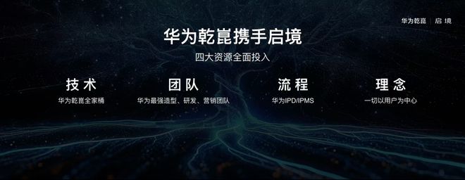 2025年11月,启境品牌正式发布之际,华为乾崑宣布“四大资源Allin”启境,包括“技术、团队、流程、理念”,全程陪跑,为产品全生命周期的商业成功负责。