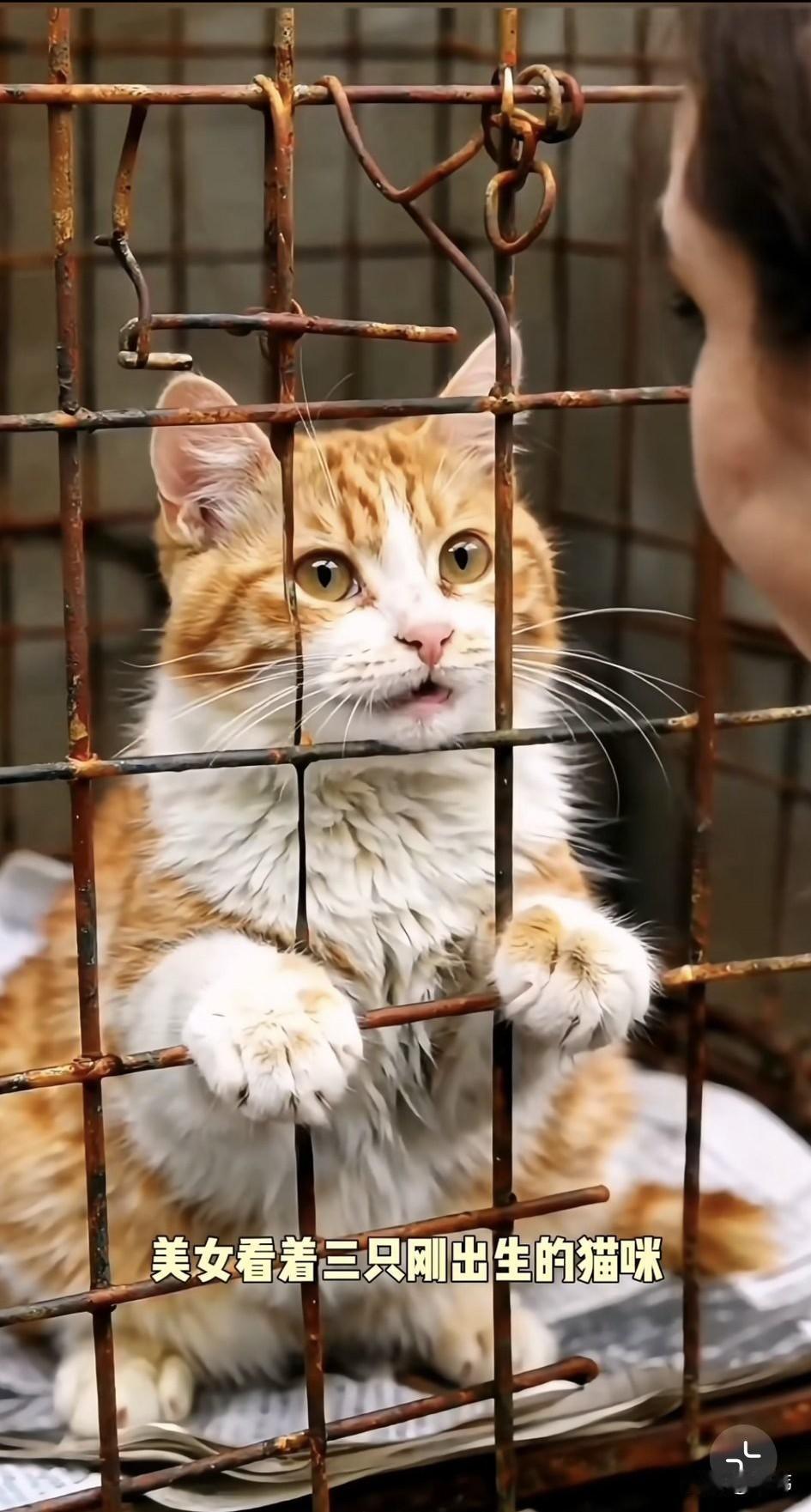 泪目了!一只怀孕的流浪猫妈妈不慎被人抓了,并且把它关在了一个铁笼子里,结果它在铁笼里生了四只小奶猫,它深知自己的命运,于是大声呼救希望有人能够救救自己的孩子,它要把几只小奶猫送人,这样它们才能活下去。 这时候一位漂亮的小姐姐路过这里,被它凄惨的叫声吸引了过来,猫妈妈把她当做了救星,拼命朝她叫,然后用祈求的目光望着她,又用爪子指指小奶猫,意思是让她把小猫带走。小姐姐何尝不明白它的意思,可她又担心养不活小猫,于是小姐姐有了一个大胆的想法,就是把它们都带走,可笼子上有锁,她打不开,只能通过缝隙拿出小奶猫,而这时候有人走了过来。 恰好是笼子的主人抓猫的坏人,他怒斥小姐姐偷猫,而小姐姐则说要买下它们,最终小姐姐花钱买了猫妈妈一家,成功救下就它们一家,之后小姐姐就收养了它们,相信在她的照顾下,猫妈妈一家也会越来越好的。