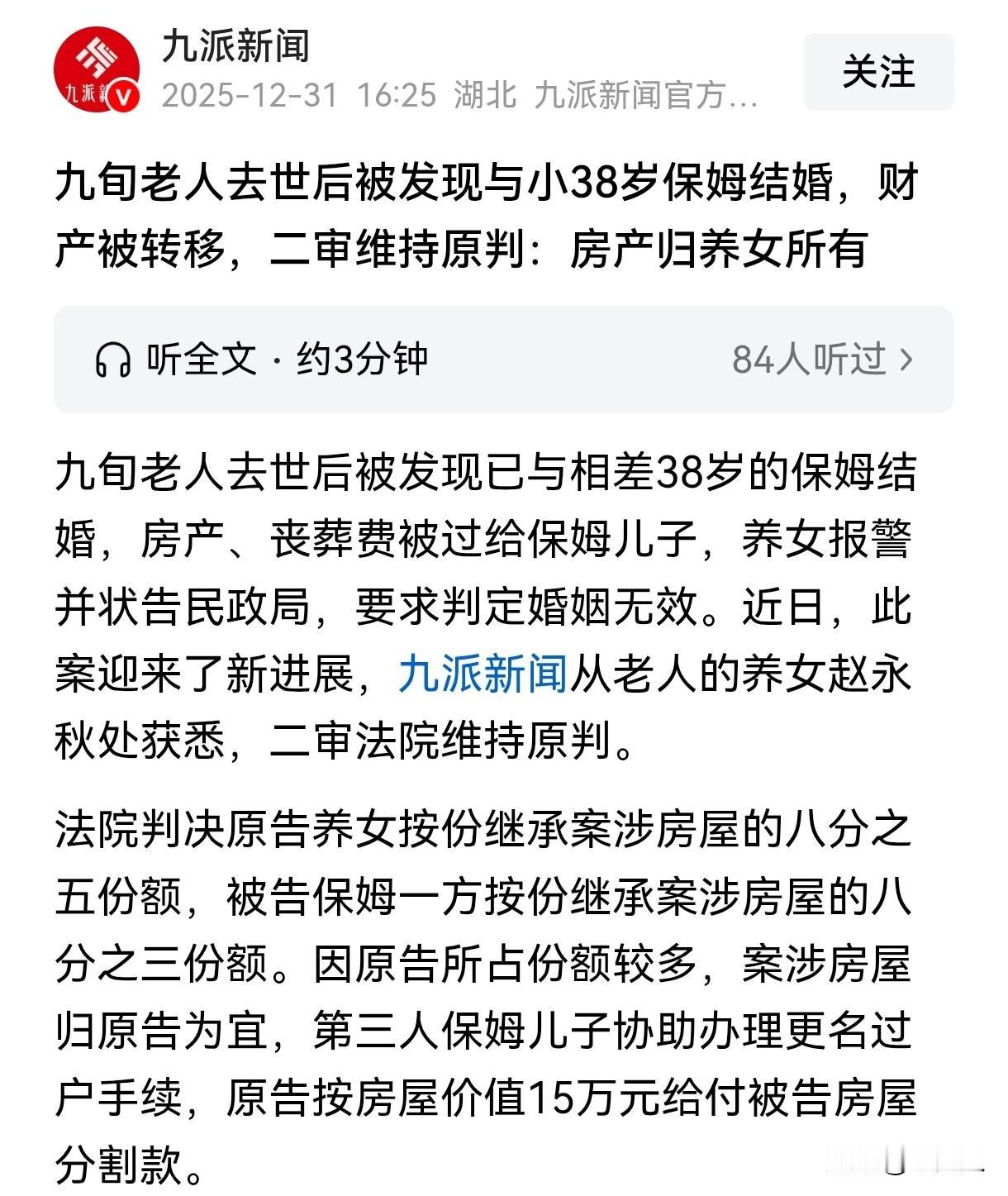 辽宁锦州,女子回家处理养父身后事,这才发现养父生前和比他小38岁的保姆结了婚,家