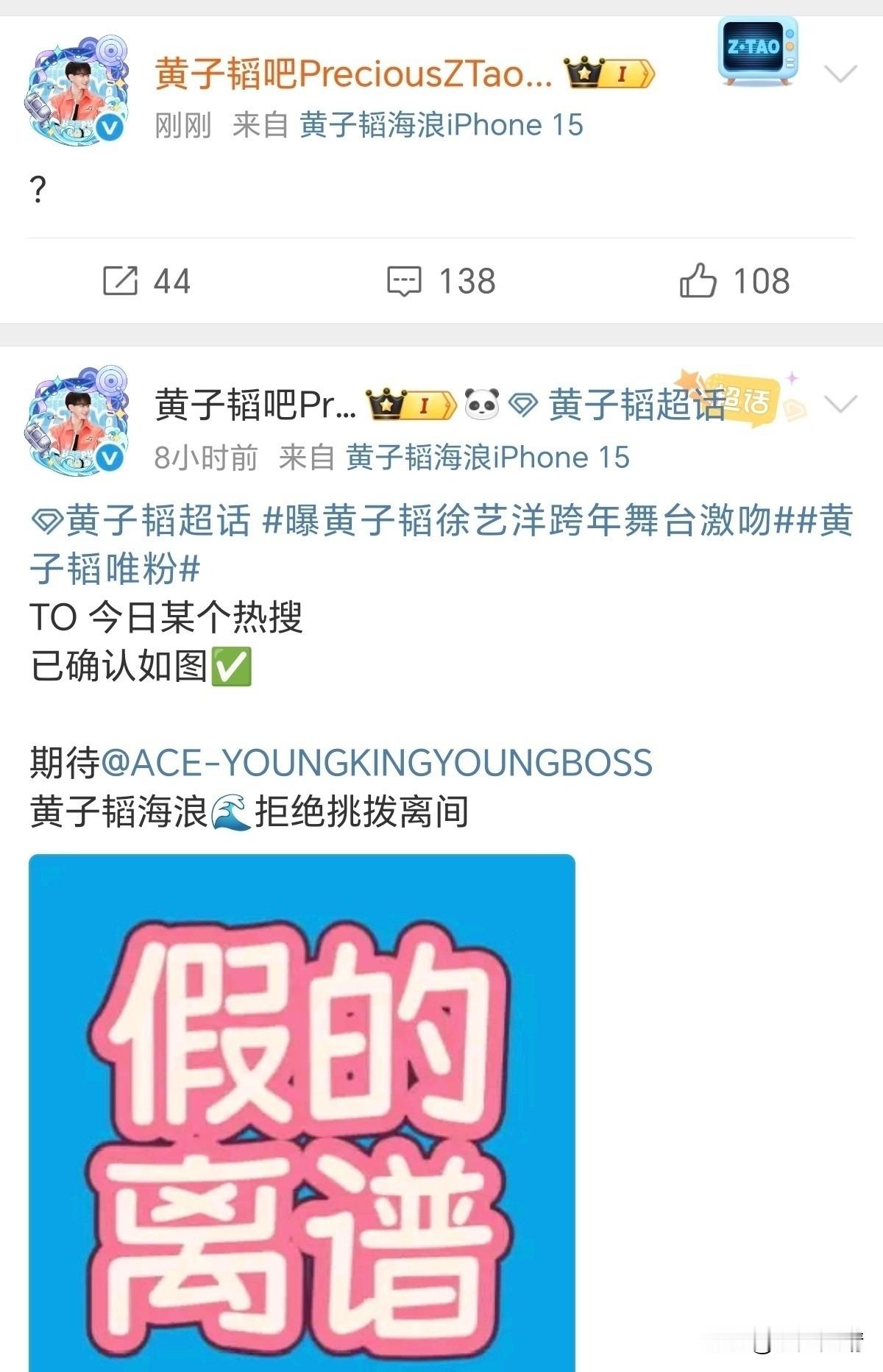 打脸了!黄子韬大吧今天早上才发文辟谣说黄子韬和徐艺洋跨年舞台激吻是造谣,今天晚上黄子韬和徐艺洋就在跨年舞台上热吻了,证实了传言是真的。