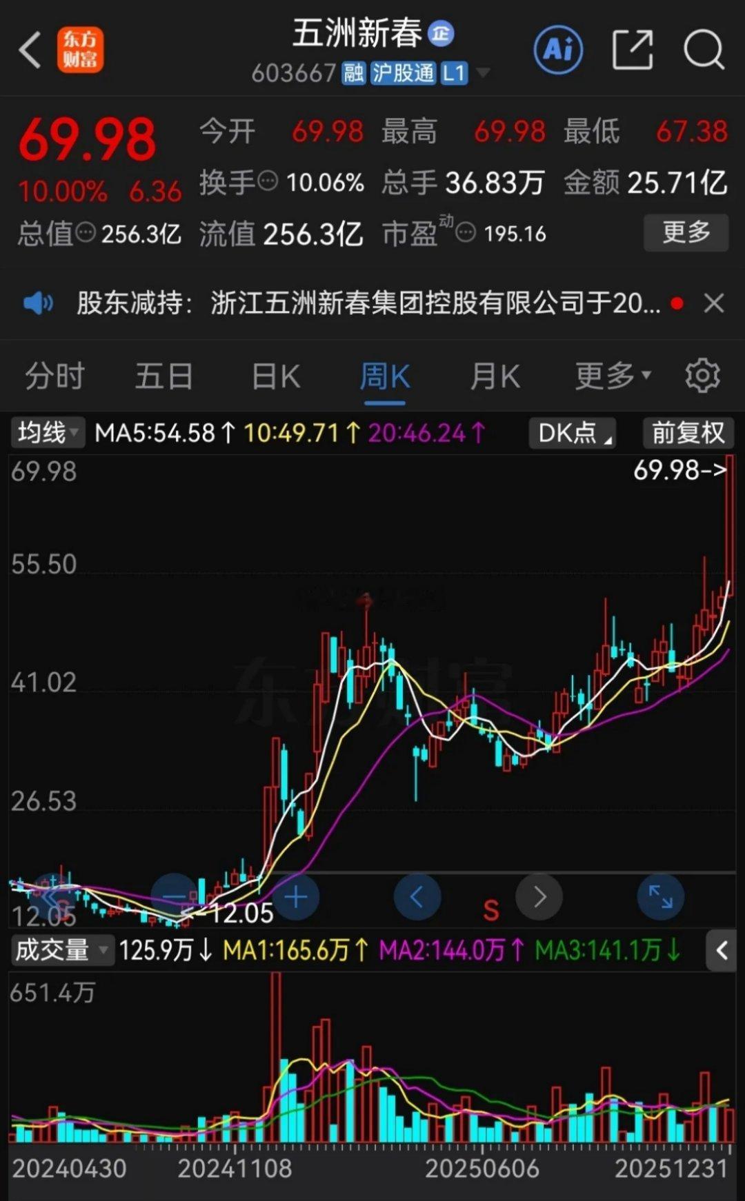 最近五洲新春这只股票走出了3连板,热度持续上升,第一次关注它还是去年,那时候这家公司因为人形机器人概念,加上春节效应,股价从10几元涨至目前近70元了!近期又因为商业航天题材,再加上跨年的因素受到市场关注,股价又开始逐渐走强了,回头来看一只股票要走出大牛趋势,还得需要不断刺激才行啊!个人观点,仅供参考,不构成投资建议!