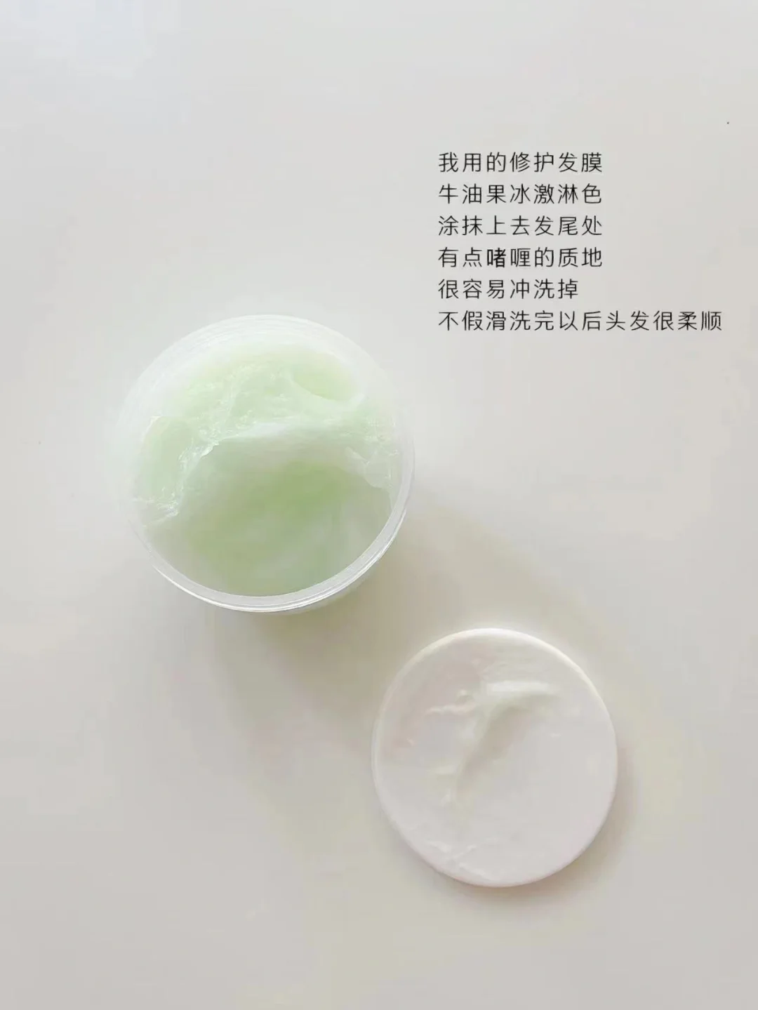 洗头发前和zui后一遍都要涂抹修复护发素,我的头发比较毛躁,发尾开衩,所以要涂抹护发素让头发变顺滑。护发素是牛油果冰激淋质地,涂抹上去很容易冲洗,不会假滑,但洗完吹干之后真的变得很柔顺。
