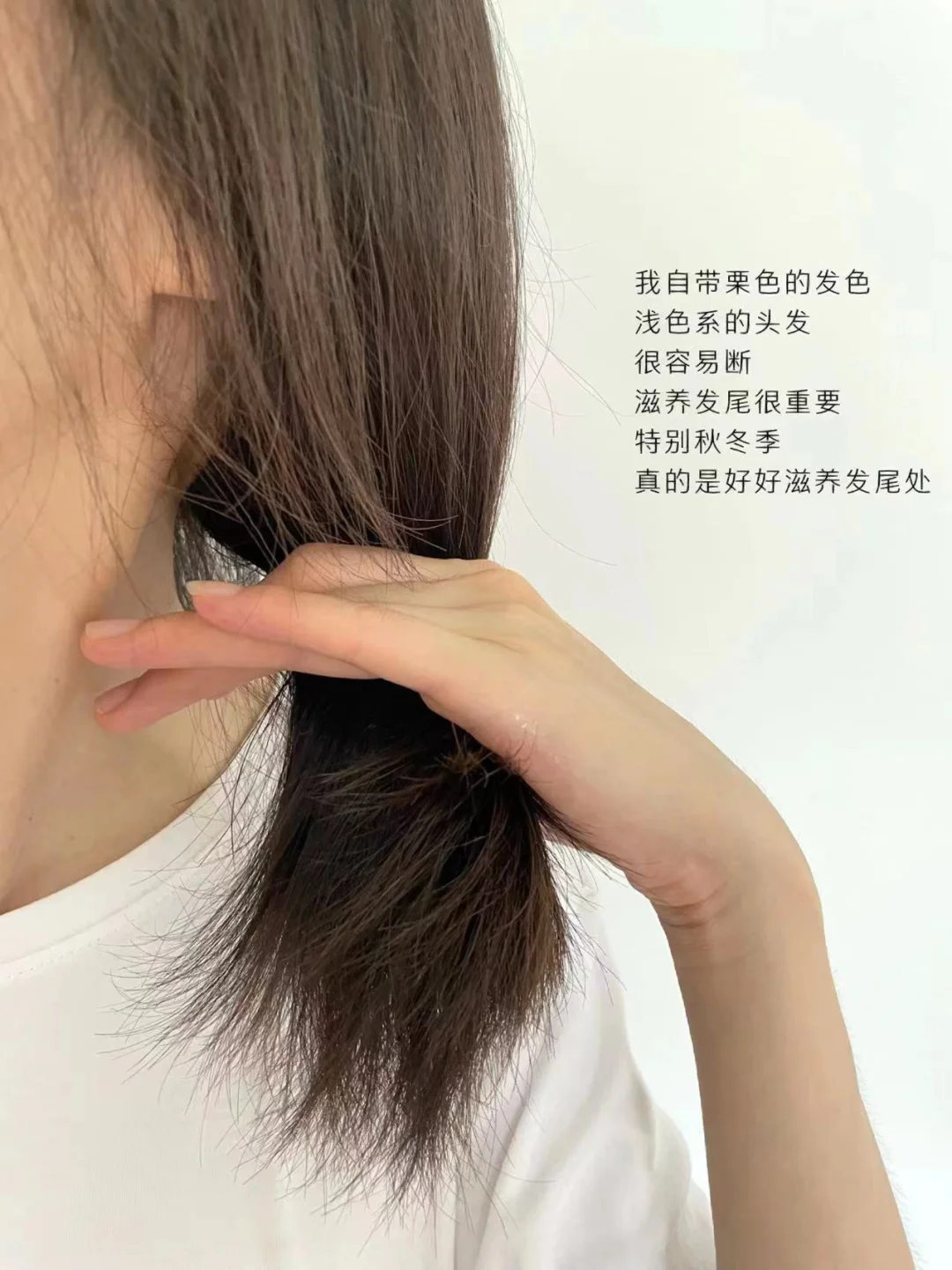 以前我不注重涂抹护发精油,导致发尾开衩严重。秋天来了,现在还是用回精油,挤出一点点在手心处抹匀,然后按压在发尾处,让发尾得到滋润(不要揉搓)。