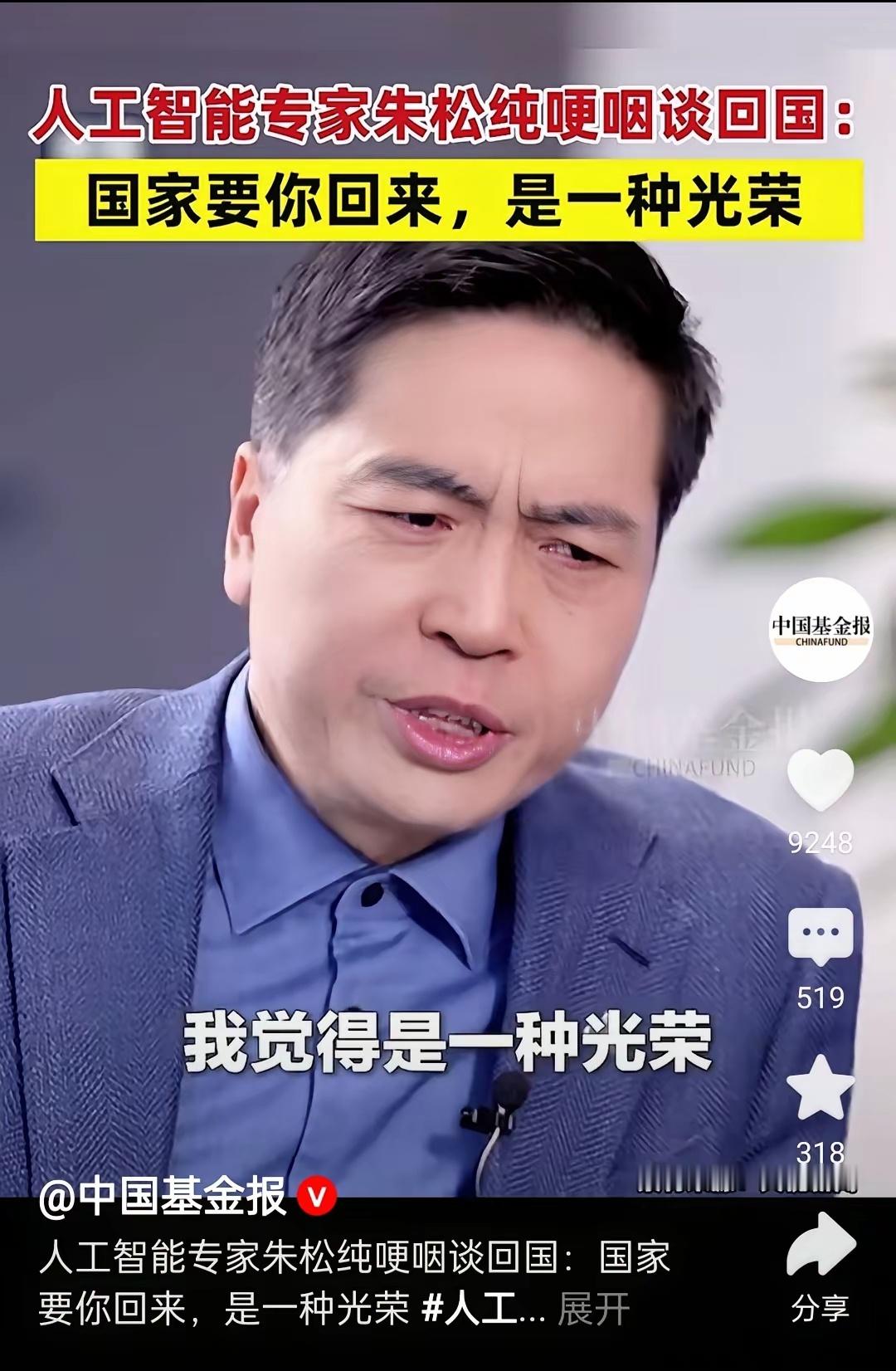 人工智能专家朱松纯哽咽的说,当“国家让你回来”的时候,那是一种荣耀,也是一种“信