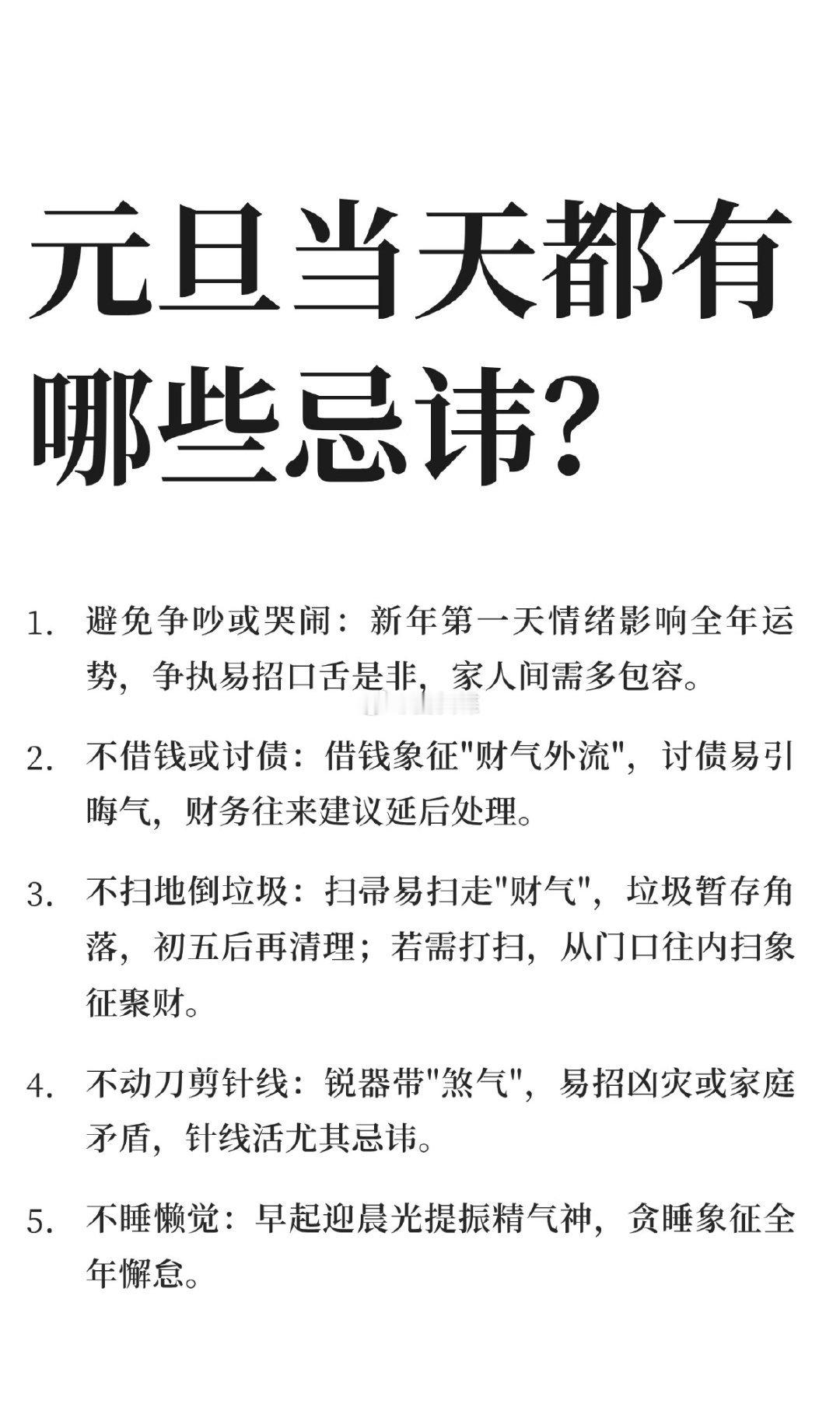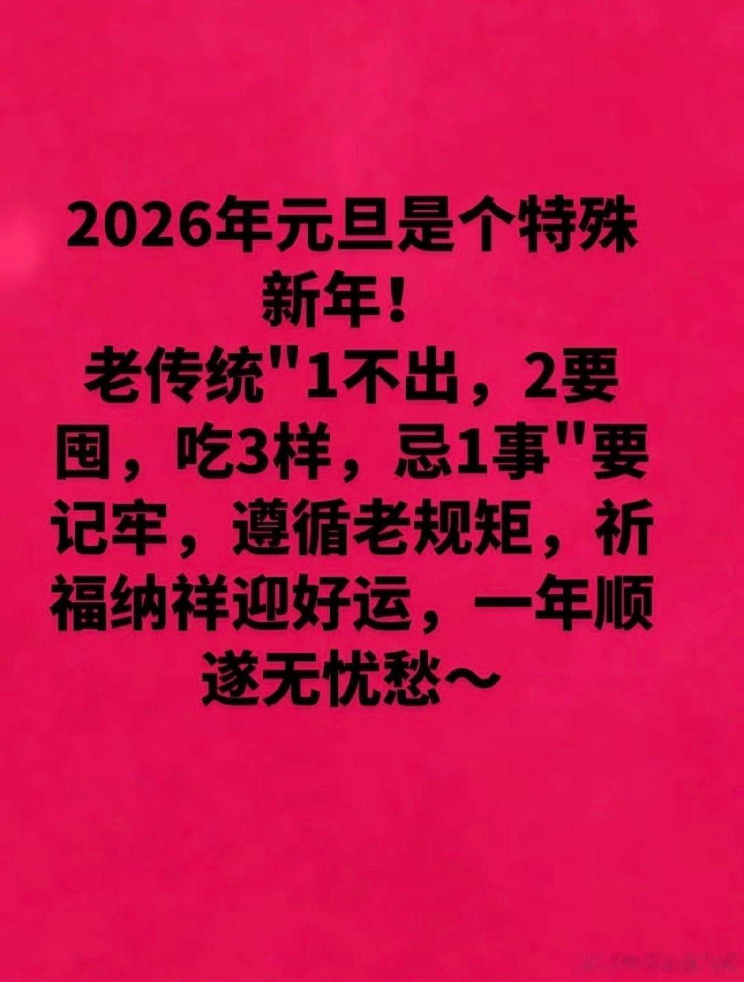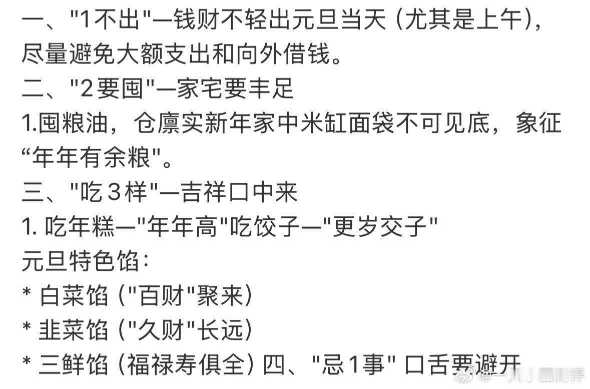 原来新年第一天有这么多讲究2026年元旦第一天一定会有好兆头的~1不出2要囤吃3