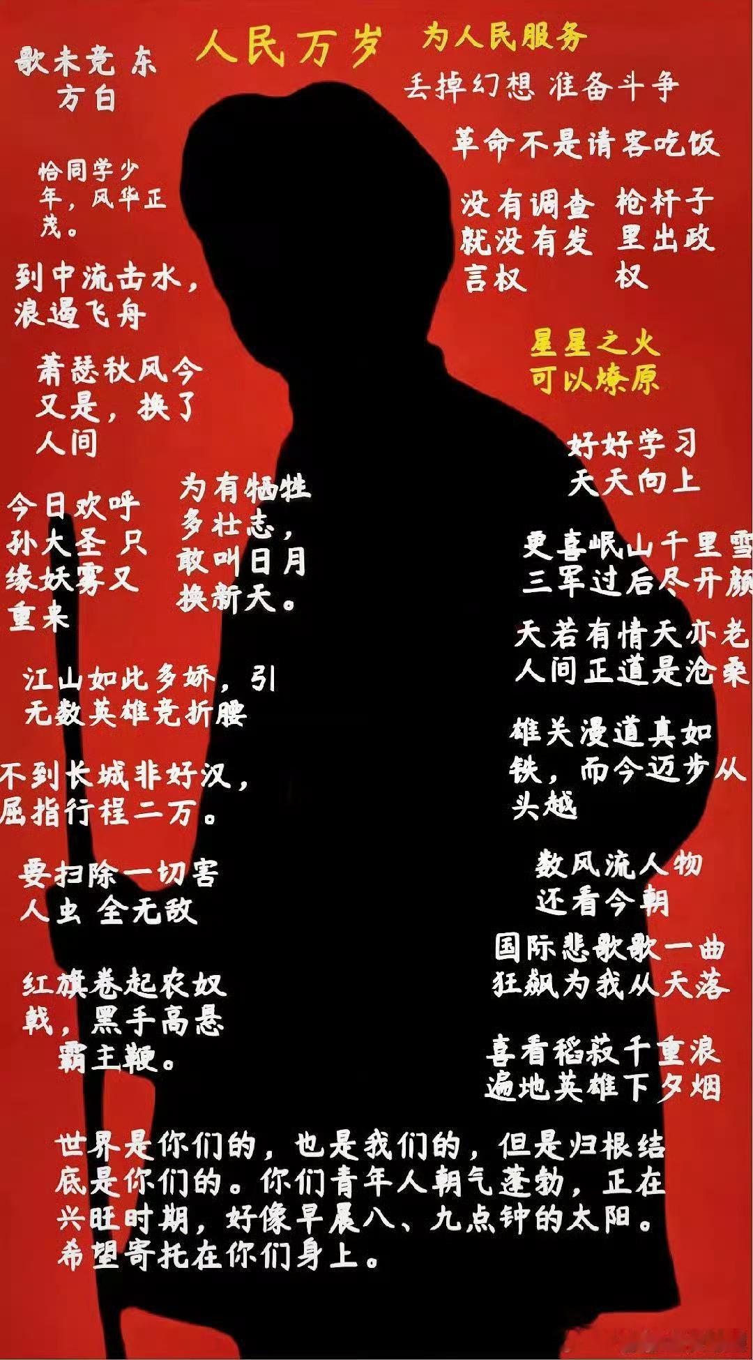 【毛主席心中的“盛世”什么样?——写在2026年元旦】2025年12月26日0点的韶山今天,当我们站在21世纪的中国大地上,一边面对高楼林立、高铁飞驰、航母劈波、5G覆盖的现实,一边追忆领袖、先烈、英雄们艰苦奋斗的峥嵘岁月时,不少人会情不自禁地感慨:“这盛世,如您所愿”;“当今中国乃中华五千年未有之盛世”。然而,刚刚纪念完毛主席诞辰132周年,站在2026新年的门口的我突然想到:如果毛主席真的能穿越时空,站在这片倾注一生心血的土地上,他也许会欣慰于现代化,也可能会皱眉于分化、腐化、西化。因为在那一代人的心中,“盛世”从来不只是GDP数字、不是高楼大厦,而是一个人民真正当家作主、人人平等、共同富裕、道德高尚、劳动光荣的新社会。一说到盛世,肯定有人会立马想到历史上的“大唐盛世”。想到“大唐盛世”,大家一般也会想到“朱门酒肉臭,路有冻死骨”的杜甫名句。也就是说,“路有冻死骨”已经与“大唐盛世”密不可分,这就涉及到一个更加核心的问题:这盛世到底是属于谁的盛世?是多数人的盛世,还是少数人的盛世?“忆昔开元全盛日,小邑犹藏万家室。”这是杜甫的《忆昔》中的大唐:府库充盈、百姓富庶、国家繁荣昌盛,一副太平盛世情景。但诗人的赞颂,与历史的真实记载时有差别的:贞观年间:“江淮之间,爰及岭外,涂路悬阻,土旷人稀,流寓者多。”(《全唐文·卷2·罢差科徭役诏》)武周时期:“今天下户口,亡逃过半,租调继减,国用不足。”(《旧唐书·韦嗣立传》)开元年间:“虽户口至多,而逃亡未息。”(《全唐文·卷35·禁逃亡诏》)如果真如文人讴歌的盛世,这没战乱、没瘟疫的,老百姓逃什么啊?在马克思主义史学家蔡美彪的中国史中,被无数次吹嘘过的大唐盛世,也是一段农民起义风起云涌的历史。在鲁迅先生的眼中,那盛世不过是“坐稳了奴隶的时代”。被封建御用文人所歌颂的盛世,只不过是属于封建地主阶级的盛世,绝不是属于劳苦大众的盛世。作为一个社会主义国家,我们这么多人竟然热衷于使用封建社会的老掉牙的东西——“盛世”,拾人牙慧,我们还怎么创造社会主义的新思想、新文化、新风俗、新习惯呢?今天,就让我们走进毛主席心目中那个宏大、激越、充满理想主义光芒却又饱含现实张力的理想社会的蓝图,看看他心目中的“盛世”全貌。一、政治:六亿神州尽舜尧——人民当家作主的新世界毛主席的理想社会,首先是人民成为真正的主人,真正的民主是人民直接参与国家管理,是“六亿神州尽舜尧”。毛主席曾不断强调:“劳动者管理国家、管理军队、管理各种企业、管理文化教育的权利,实际上,这是社会主义制度下劳动者最大的权利,最根本的权利。” 毛主席当然重视人民的劳动权,当然也努力在提高人民的休息权和福利待遇,但同时,毛主席也希望老百姓能参与日常决策与管理,把公社、工厂和国家当成自己的,而公社、工厂和国家也把人民当成真正的主人。为了这个目标,毛主席甚至不惜粉身碎骨,打破官僚阶层的垄断,让底层声音直达北京,让人民直接拥有决策权、监督权、罢免权,让我们的干部始终和人民心连心,始终不脱离群众,从而巩固无产阶级的政权,保证社会主义的前进方向。二、经济:敢教日月换新天——消灭剥削、共同富裕的新社会毛主席的理想是彻底消灭剥削和压迫的经济基础,实现共同富裕。他坚信,只有生产资料公有,才能根除阶级分化的土壤。早在1943年,他就提出“把群众力量组织起来”,反复说到列宁同志的这个观点:个体经济生产是“每日每时都在产生资本主义”的温床。因此,毛主席大力推动合作社、人民公社,试图通过集体化将农民组织起来,走上社会主义道路。在工业领域,毛主席推崇“鞍钢宪法”——干部参加劳动,工人参加管理;改革不合理的规章制度;实行工人、干部、技术人员“三结合”。这不仅是生产方式的革新,更是经济民主的体现:工人不是机器的附庸,而是企业的主人。1966年,毛主席在“五七指示”中描绘了一个理想社会的微观模型:军队、工厂、学校、机关都要办成“大学校”,亦工亦农亦兵,消除脑体、城乡、工农“三大差别”。每个人都是全面发展的“多面手”,社会不再被分工割裂。三、文化:遍地英雄下夕烟——塑造社会主义新人对毛主席而言,没有与之匹配的“新人”,再完美的制度也会变质。因此,他毕生致力于塑造一种全新的价值立场、精神风貌和道德人格,他自己也只要“教员”这个称呼。“全心全意为人民服务”是他为共产党人立下的根本宗旨:“为人民利益而死,就比泰山还重。” 在《纪念白求恩》中,他树立了一个标杆:“一个人能力有大小,但只要有这点精神,就是一个高尚的人,一个纯粹的人,一个有道德的人,一个脱离了低级趣味的人,一个有益于人民的人。” 在七届二中全会上,他告诫全党:“务必继续保持艰苦奋斗的作风。”他要求我们坚决不做李自成,要抵挡住敌人的糖衣炮弹的进攻。晚年时的毛主席,对帝国主义的演变高度警惕,提出了要在大风大浪中去培养社会主义接班人,并制定了五项标准:一、要懂得马列主义,不要搞修正主义。二、要为大多数人谋利益。三、要能够团结大多数人。四、要民主,不要一言堂。五、自己有错误,要做自我批评。当然,毛主席当年的许多“硬实力”层面的设想实现了,而且有些还是超额实现了