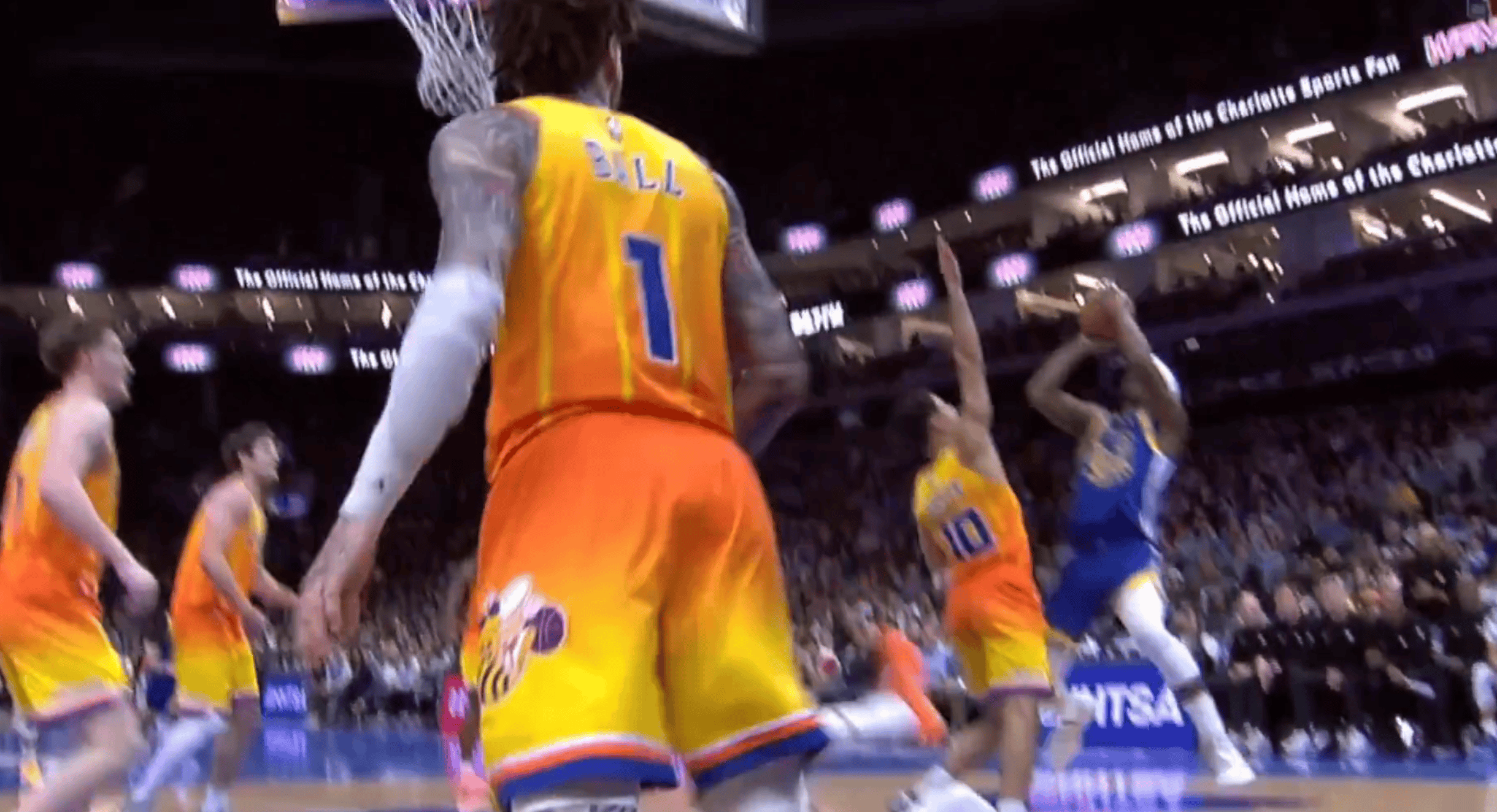 第三节比赛中,巴特勒在篮下强起,制造了约什-格林的犯规。