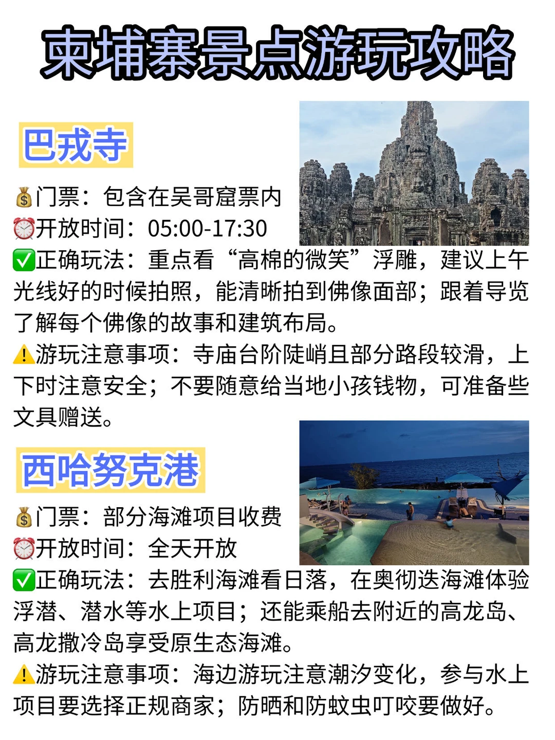 柬埔寨超全游玩攻略|景点+交通+住宿+美食一站式搞定 去柬埔寨旅行,想把古迹、海滨、美食一网打尽?这份涵盖景点、交通、住宿、美食的超全攻略,帮你避开坑、玩得爽,解锁柬埔寨的N种打开方式!