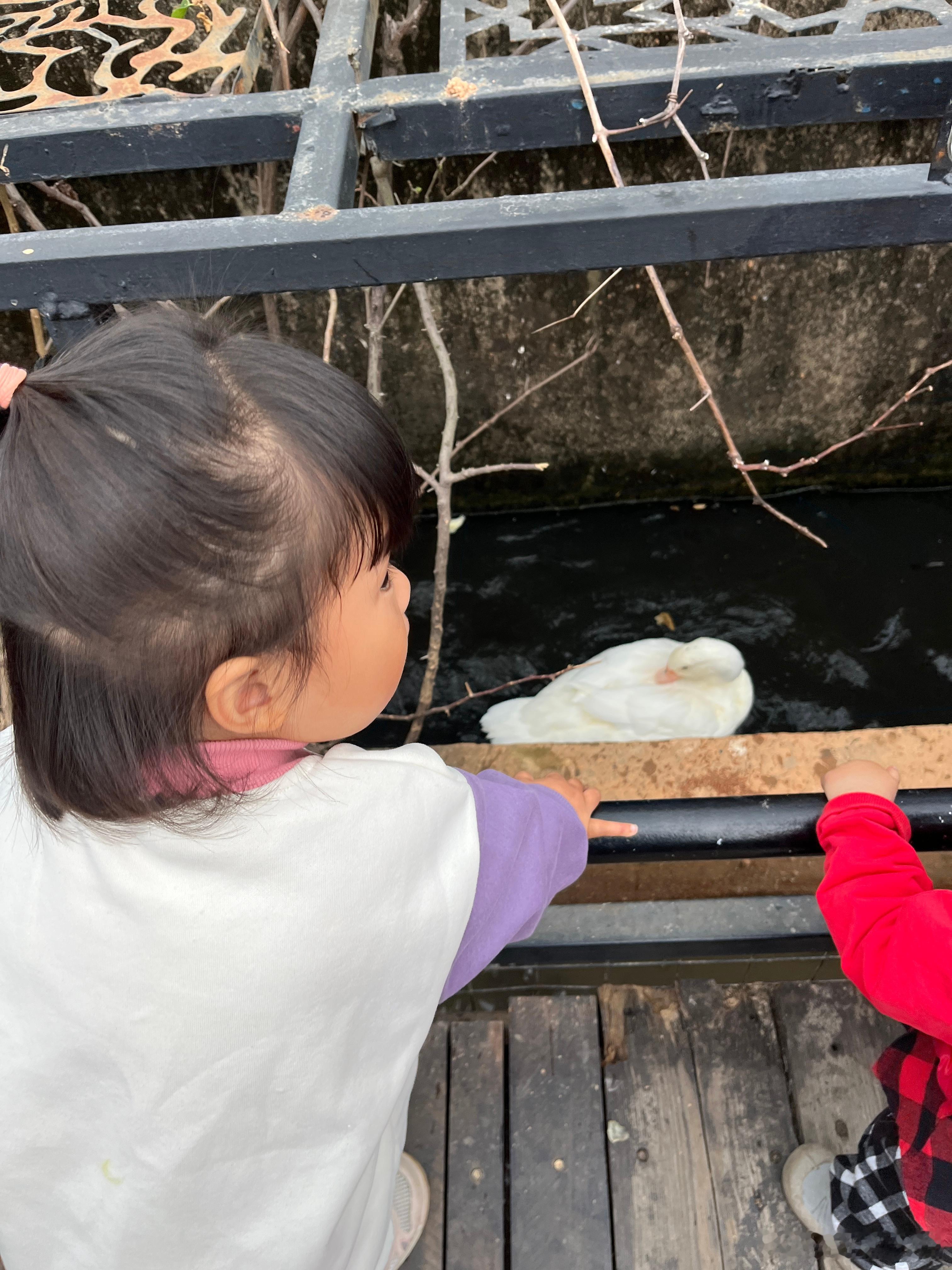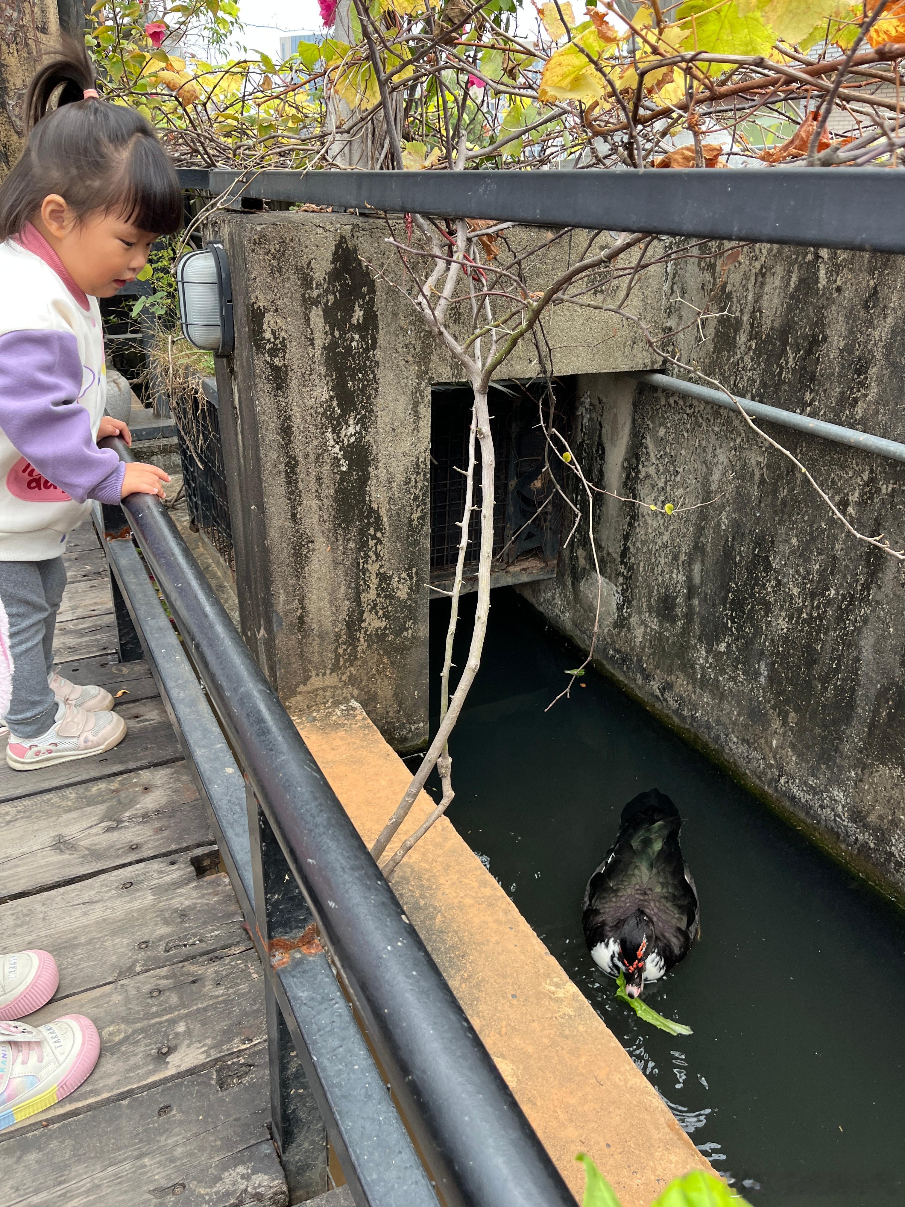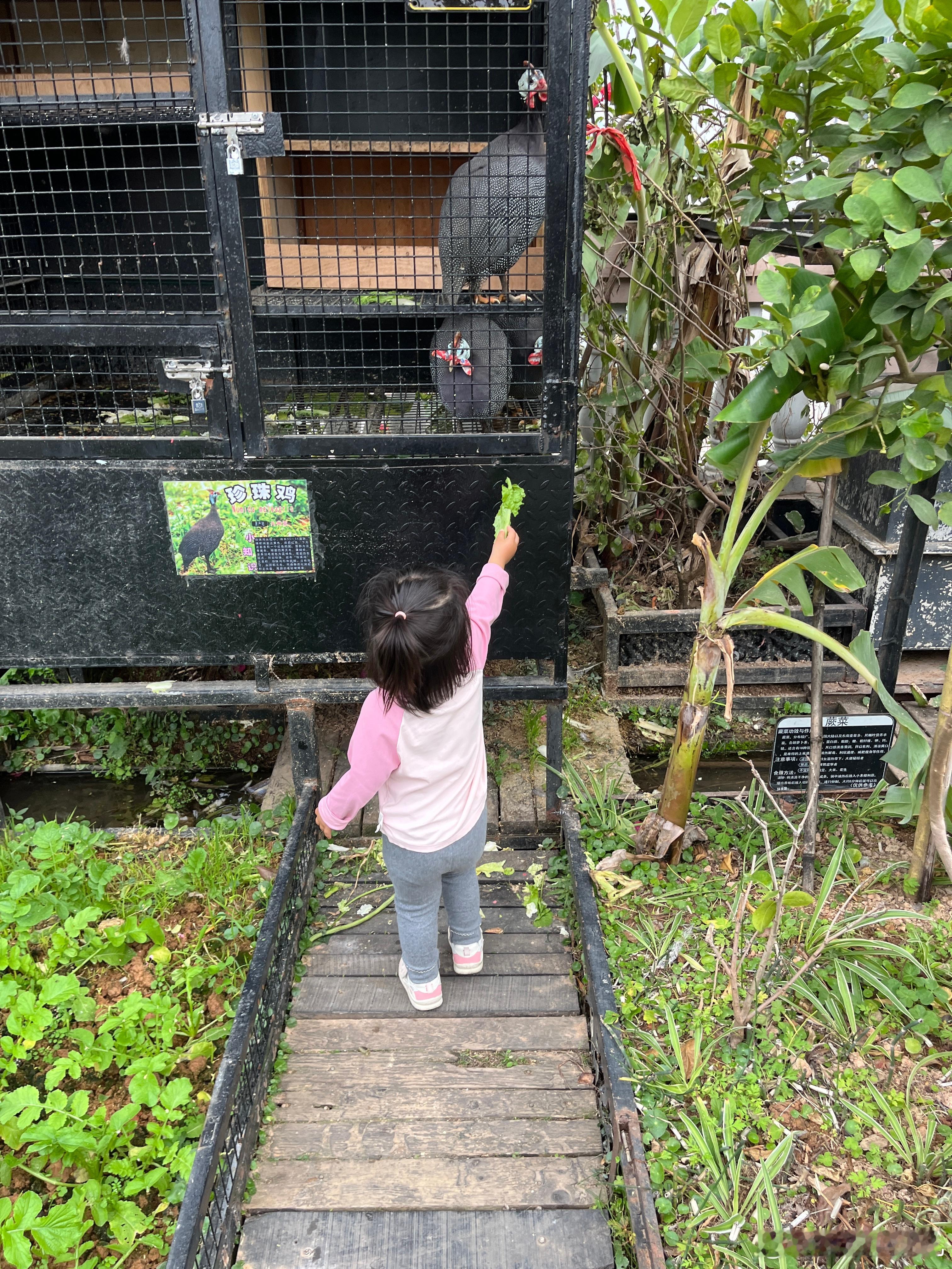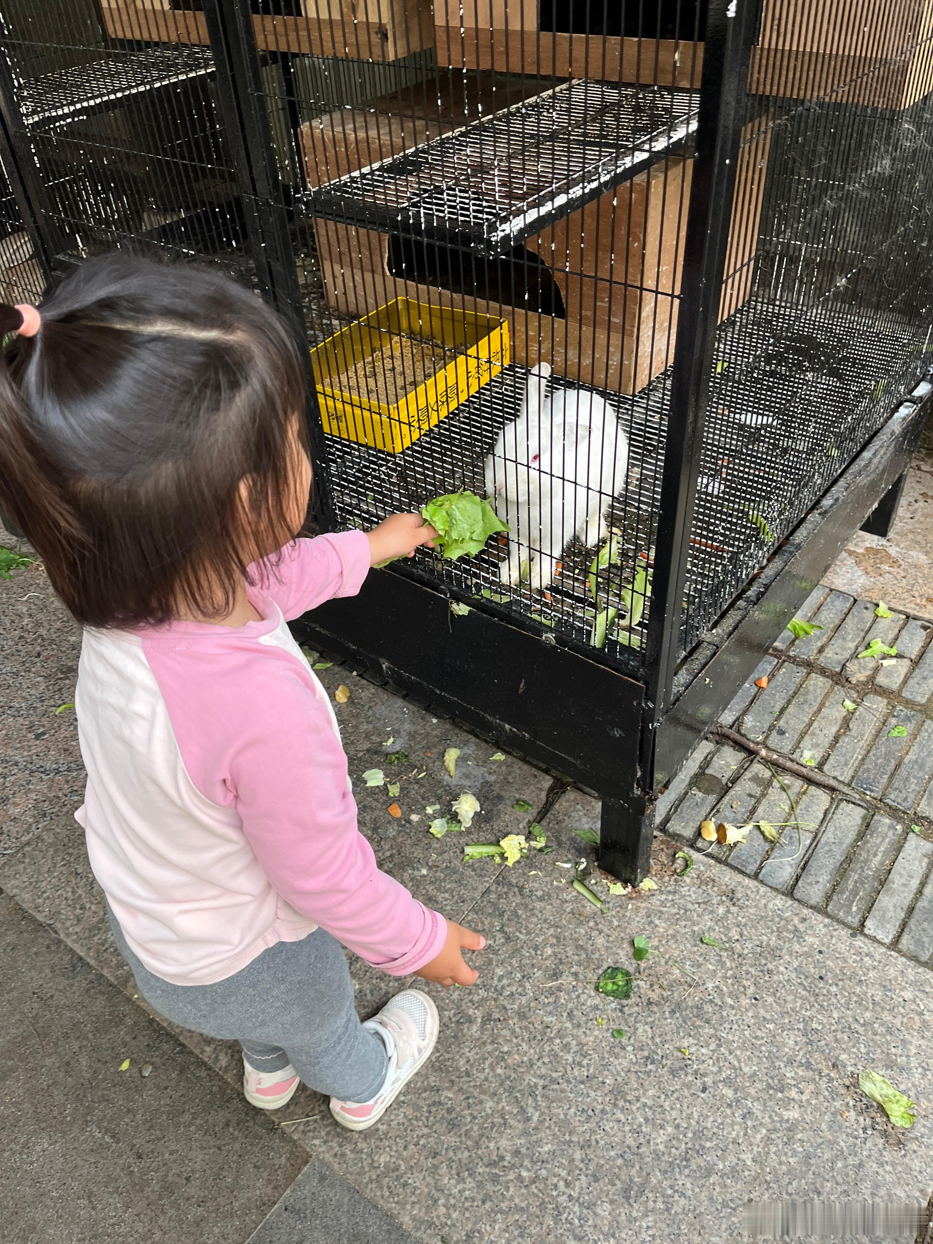 还有挺多小动物的,兔子、小猫、孔雀,珍珠鸡,鸭、鹅、鸡,猪,让我感觉回到了农村,特别是猪,真的感觉回到小时候,自己去割那个番薯苗,拿回来剁碎,拿去锅里煮,再拿点米糠一起混合,整桶提去喂它们。女儿喂猪没喂过瘾,因为只有它们在认真吃菜,别的小动物已经投喂饱了。2026年生娃基本不花钱这个政策好。