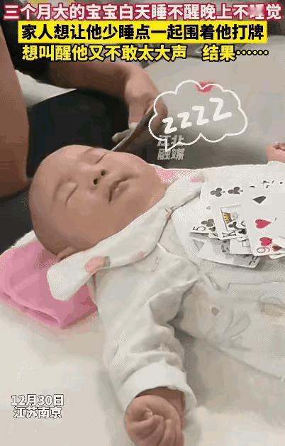 “笑不活了!”江苏南京,三个月宝宝白天睡不醒,晚上不睡觉。没想到,家人为了让宝宝白天少睡点,便围着他打牌,但又不敢大声,怕吵醒他,结果这个方法没用。 南京江北的鲁先生家有个三个月大的娃,这娃白天睡得那叫一个沉,不管家里有点啥小动静,根本吵不醒,可一到晚上就来精神了,瞪着眼睛玩到大半夜,把鲁先生和家里人熬得够呛,天天顶着黑眼圈icon带娃。 这一家子带娃带得那叫一个“魔怔”。白天这小家伙睡得像头小猪,怎么折腾都不醒,连雷打不动的闹钟声都能被他自动屏蔽。到了晚上,他那双乌溜溜的大眼睛就像装了夜视仪,瞪得溜圆,嘴里咿咿呀呀,精神头好得能把房顶掀了。鲁先生夫妻俩实在扛不住了,黑眼圈重得跟熊猫似的,走路都能睡着。 为了纠正这“昼夜颠倒”的毛病,一家人开了个紧急会议,想出了个自认为绝妙的“损招”——打麻将!他们的逻辑很简单:家里人气旺一点,动静大一点,这小子白天就睡不踏实,晚上自然就困了。 画面那叫一个滑稽。四个大人围着睡梦中的宝宝,搓麻将的动作那是相当克制,生怕动静大了把他吓着,又怕动静小了吵不醒他。几个人一边轻轻摸牌,一边压低嗓门交流,那表情比在赌场里还严肃。 “三条……” “碰!轻点碰……” 这场景看着就像在搞地下工作。可惜啊,这算盘打得噼里啪啦响,现实却给了他们一记响亮的耳光。宝宝仿佛自带隔音结界,任凭长辈们在旁边“暗战”,他依旧雷打不动,嘴角甚至还挂着一丝若有若无的微笑,那意思仿佛在说:“你们玩吧,我睡我的。” 这事儿发到网上,评论区直接炸锅了。网友们笑得肚子疼,纷纷调侃这是“无效叫醒”。有人说:“这娃定力可以啊,这都吵不醒,将来是个干大事的。”还有人吐槽:“你们这是在逗他玩,还是在给自己找借口打牌啊?” 其实,过来人都知道,三个月的宝宝出现这种情况太正常了。他们的生物钟还没发育成熟,分不清白天黑夜。这时候强行用噪音去干扰,不仅没用,反而可能破坏宝宝的睡眠结构。 真正的“倒时差”还得靠科学。比如白天多带宝宝晒晒太阳,见见光亮,让他的大脑知道“现在是白天”;到了晚上,把灯光调暗,保持环境安静,喂奶换尿布动作轻一点,慢慢帮他建立昼夜的概念。 鲁先生一家这波“神操作”,虽然看着好笑,但也透着带娃的辛酸和无奈。新手爸妈没经验,病急乱投医,只要能让娃睡个好觉,啥招都敢试。 养娃就像打怪升级,这才刚开始呢。希望鲁先生一家能早日找到正确的方法,让宝宝把时差倒过来,大家都能睡个安稳觉。 各位读者你们怎么看?欢迎在评论区讨论。