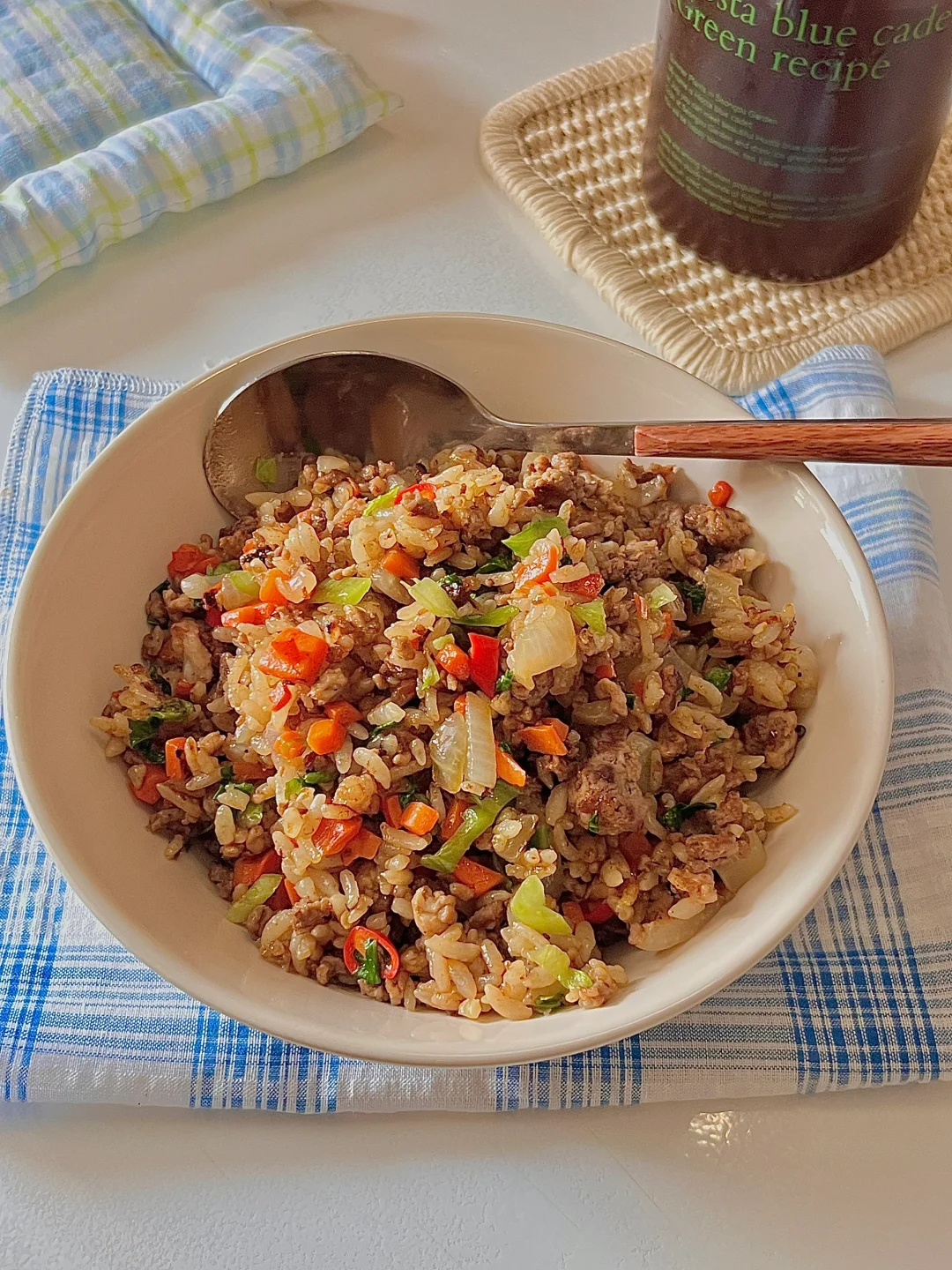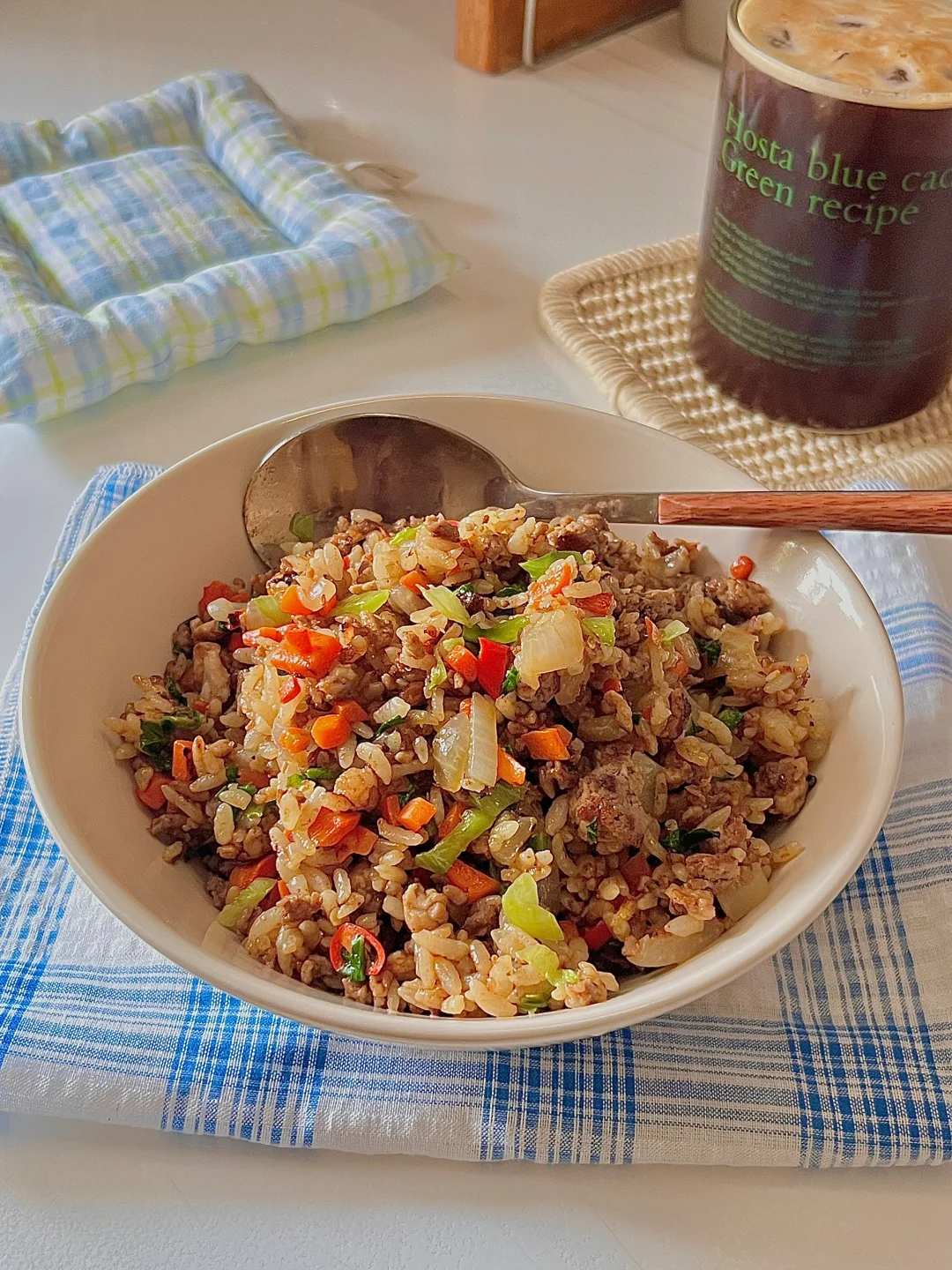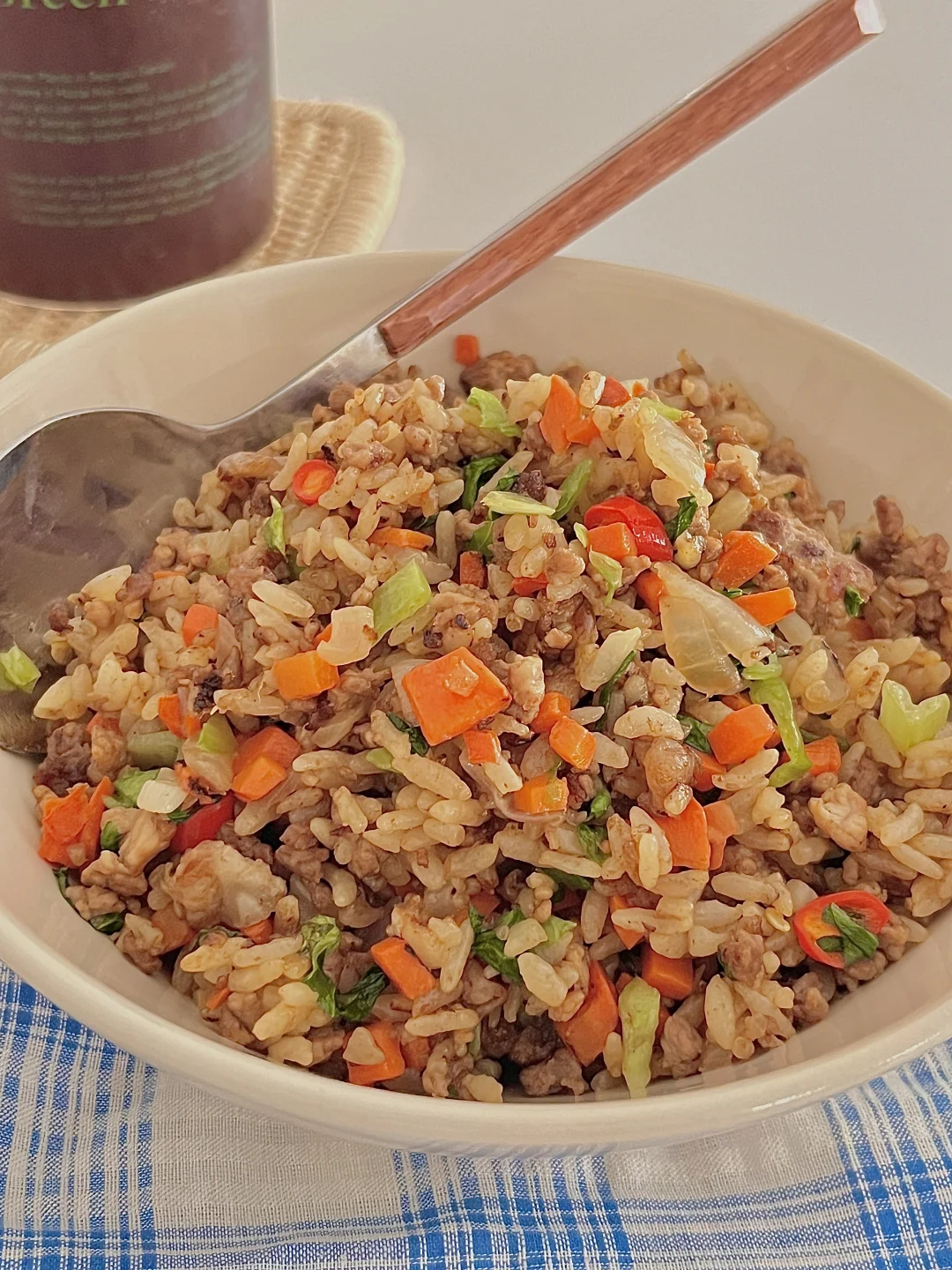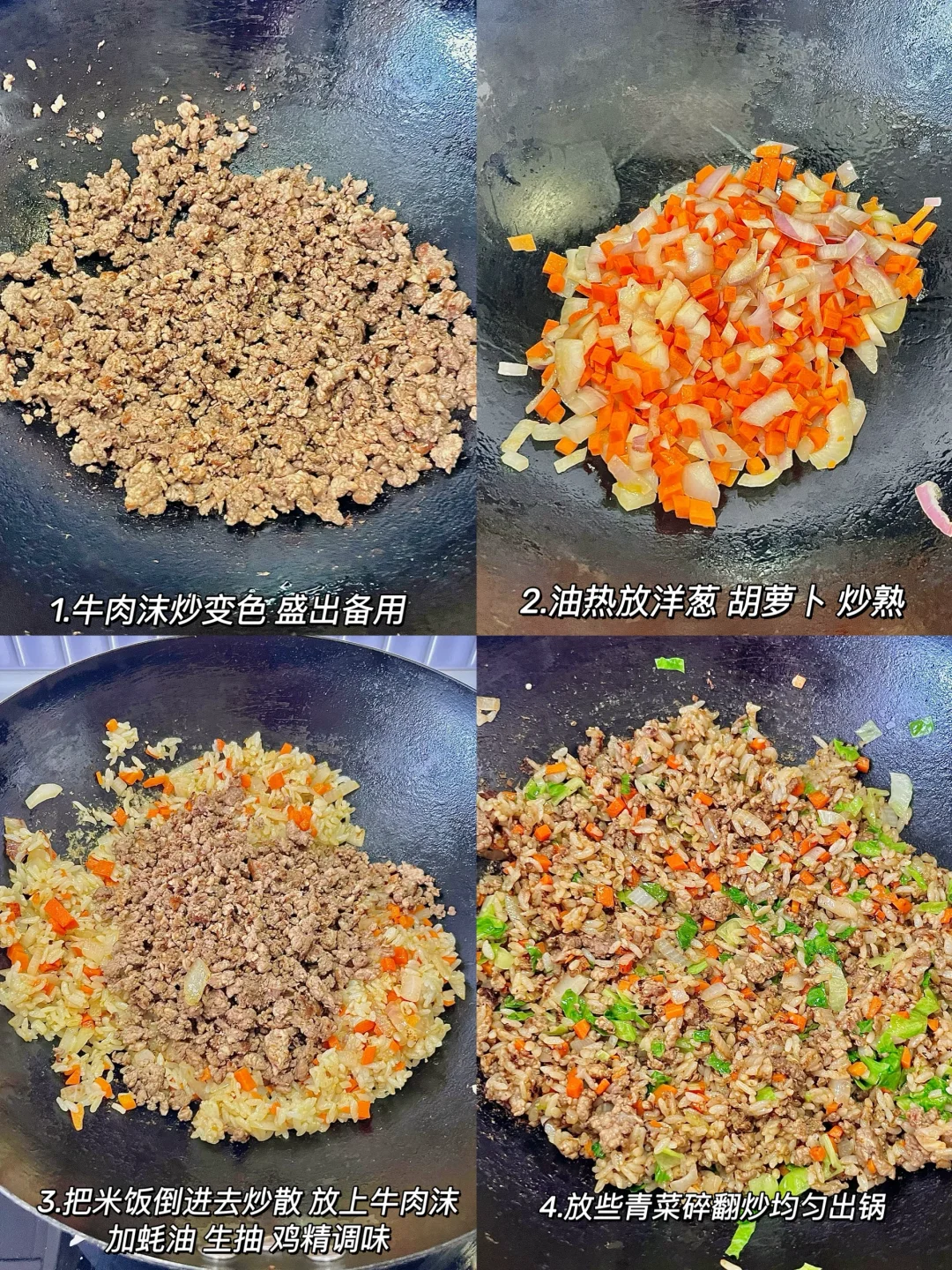 我的宅家美食日记 今日份吃的饭: 洋葱牛肉炒饭 - 牛肉沫先腌制在去炒会变得香嫩入味,加了胡萝卜🥕和洋葱口感更丰富了,有肉又有菜 香迷糊啦!低卡高蛋白 炫吧真香~ - 食材:牛肉沫 洋葱🧅 胡萝卜 青菜 剩米饭🍚 做法在图上⬆️快去试试吧~