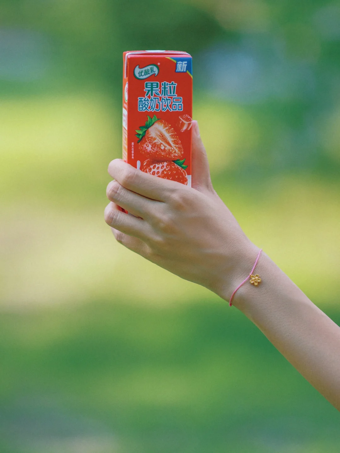 怎样拍照更吸睛?我认为是佩戴点黄金首饰,瞬间抓人眼球!这次拍摄戴上了优酸乳黄金樱花手链,精致的樱花形状栩栩如生,彷佛将春天的浪漫美好凝聚在了皓腕间~买优酸乳拆箱扫ma即可获得,还有比这更有性价比的吸“金”方式吗?!