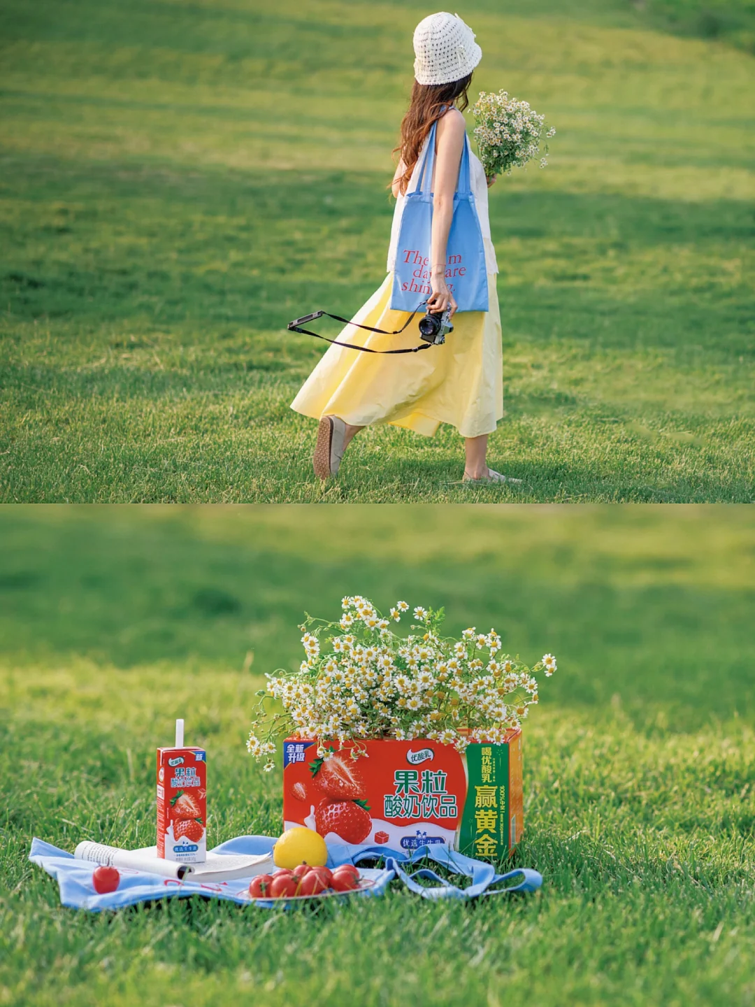 今天野餐拍照也带了敲爱喝的优酸乳,清新、酸酸甜甜的草莓味道,伴随着初夏的微风,每一口都让人心情愉悦~越来越喜欢不露脸的方式拍照啦,即便只有背影,也能通过肢体的表达,将当时的心情和氛围记录下来~
