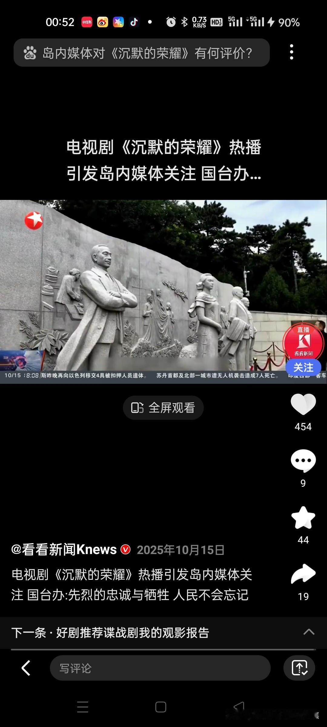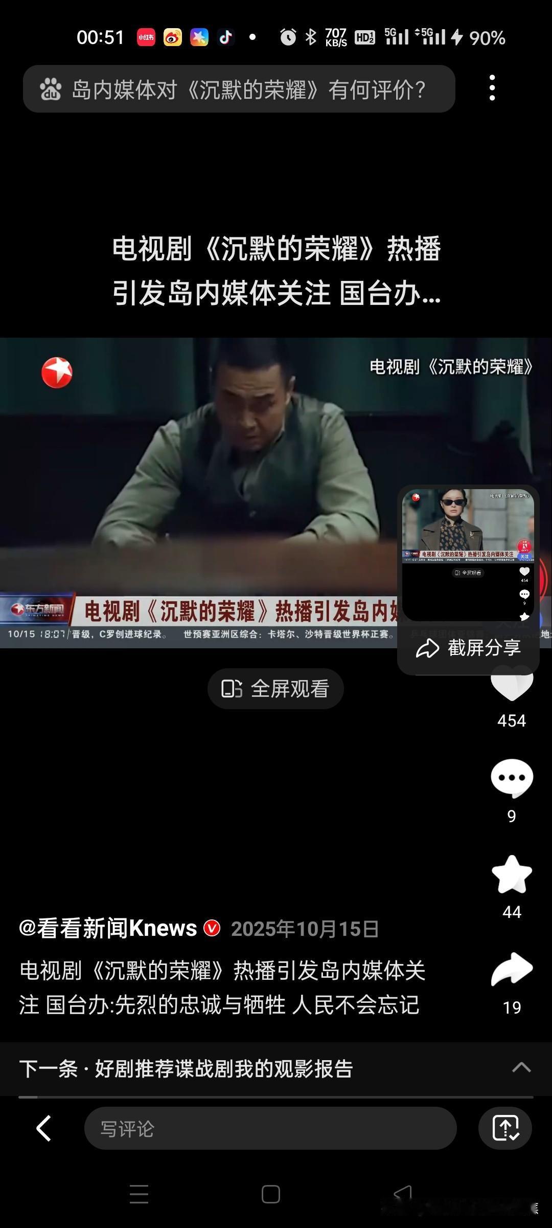 《沉默的荣耀》在台湾确实火了!这部2025年的谍战剧以真实历史为背景,讲述了吴石、朱枫等隐蔽战线英雄的故事,凭借扎实的剧情和精湛的表演,不仅在大陆收视率破3,更在台湾引发追剧热潮。 为什么受欢迎? ‌真实历史共鸣‌:剧中人物均为真实历史人物,情节符合史实,让台湾观众尤其是老一辈产生强烈共鸣。 ‌文化联结‌:闽南语童谣、老式道具等细节唤起共同记忆,演员于和伟被台湾观众称为“大陆一哥”。 ‌情感共鸣‌:主题曲和角色故事(如“宝珠”在闽南语中的寓意)拉近了与观众的距离。  00:20 1.台湾观众的反应 2.同根同源的情感 3.温和的交流与尊重史实 台湾反响 ‌媒体报道‌:台湾联合新闻网、中央社等密集报道,称其为“真人真事改编”。 ‌观众评价‌:抖音话题播放量超17亿,台湾网友留言“真实的历史格外令人感动”。  03:38 1.电视剧《沉默的荣耀》的影响 2.台湾青年邱庆龄的寻迹之旅 3.北京西山国家森林公园的无名英雄纪念广场 4.北京市福田公墓的祭奠 5.台湾青年的行动 6.台湾青年的观点 7.观众追剧的深层意义 8.历史与身份认同 历史意义 该剧填补了谍战剧在两岸历史叙事上的空白,展现了隐蔽战线英雄的忠诚与牺牲,激励两岸同胞为祖国统一奋斗。沉默的荣耀 沉默是荣耀 沉默荣耀主题曲 沉默的荣耀幕后 民国潜伏 隐秘的荣耀 国军卧底