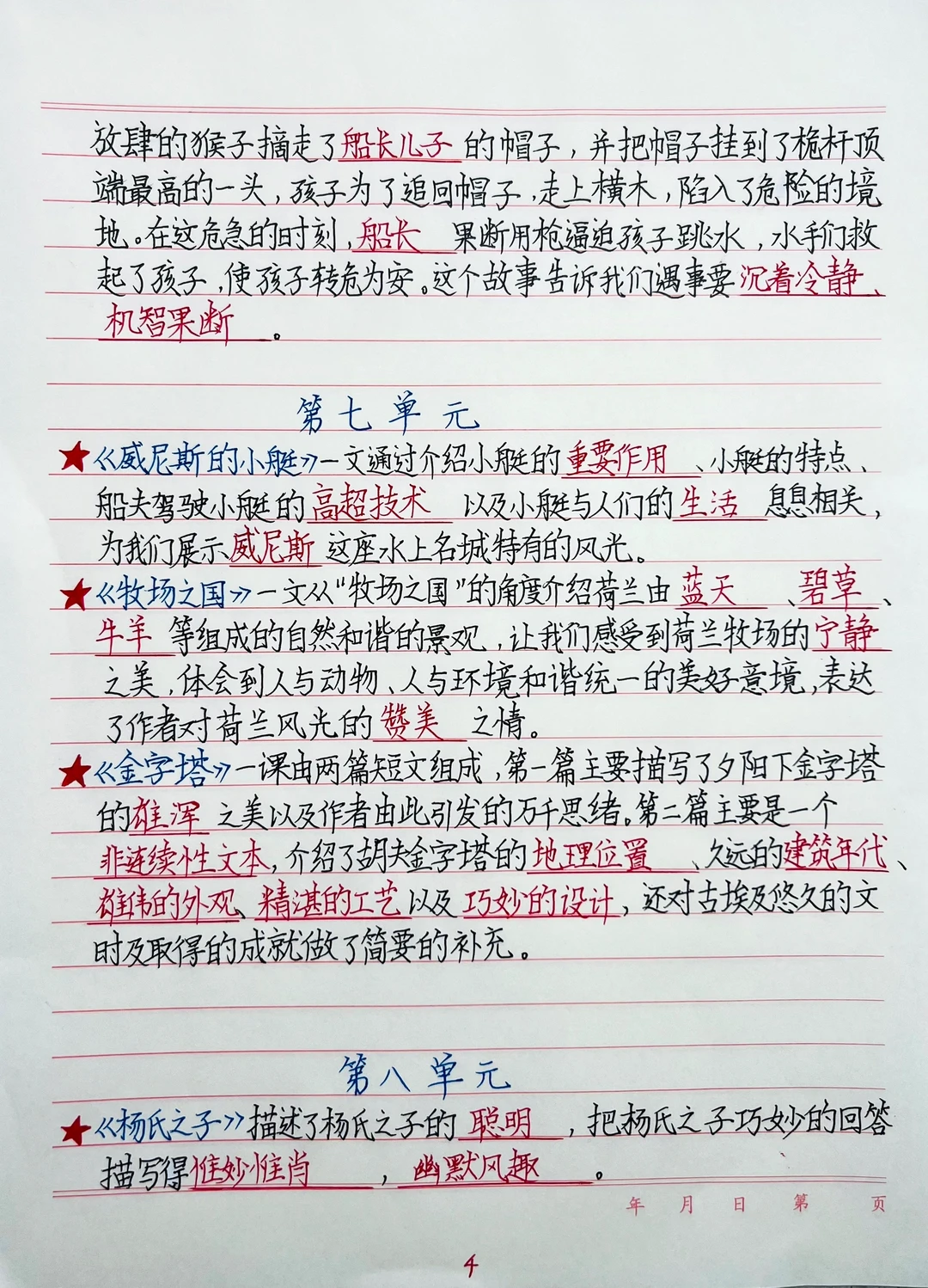 周末整理了整本书的课文梳理,第七八单元和空白页在后面几页,往后翻就能看到了。