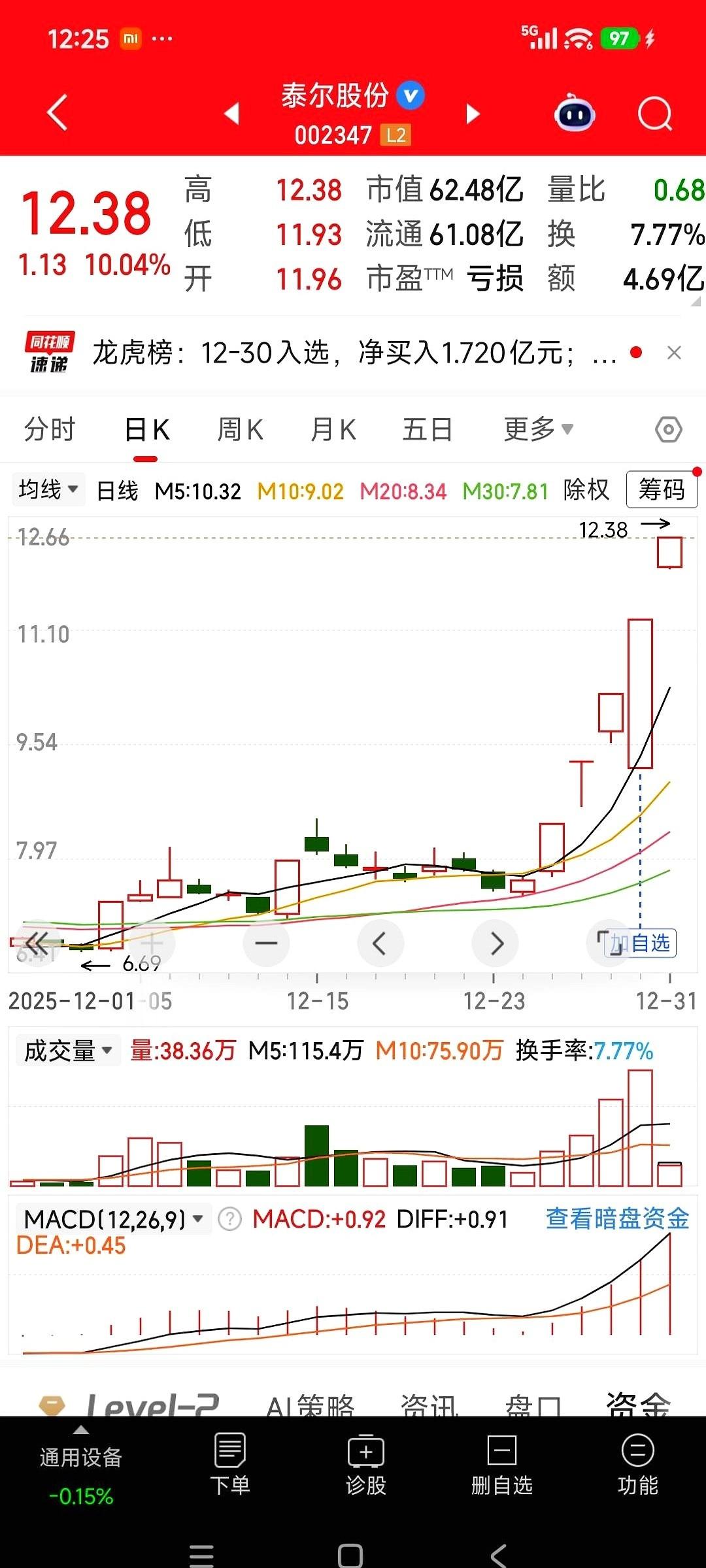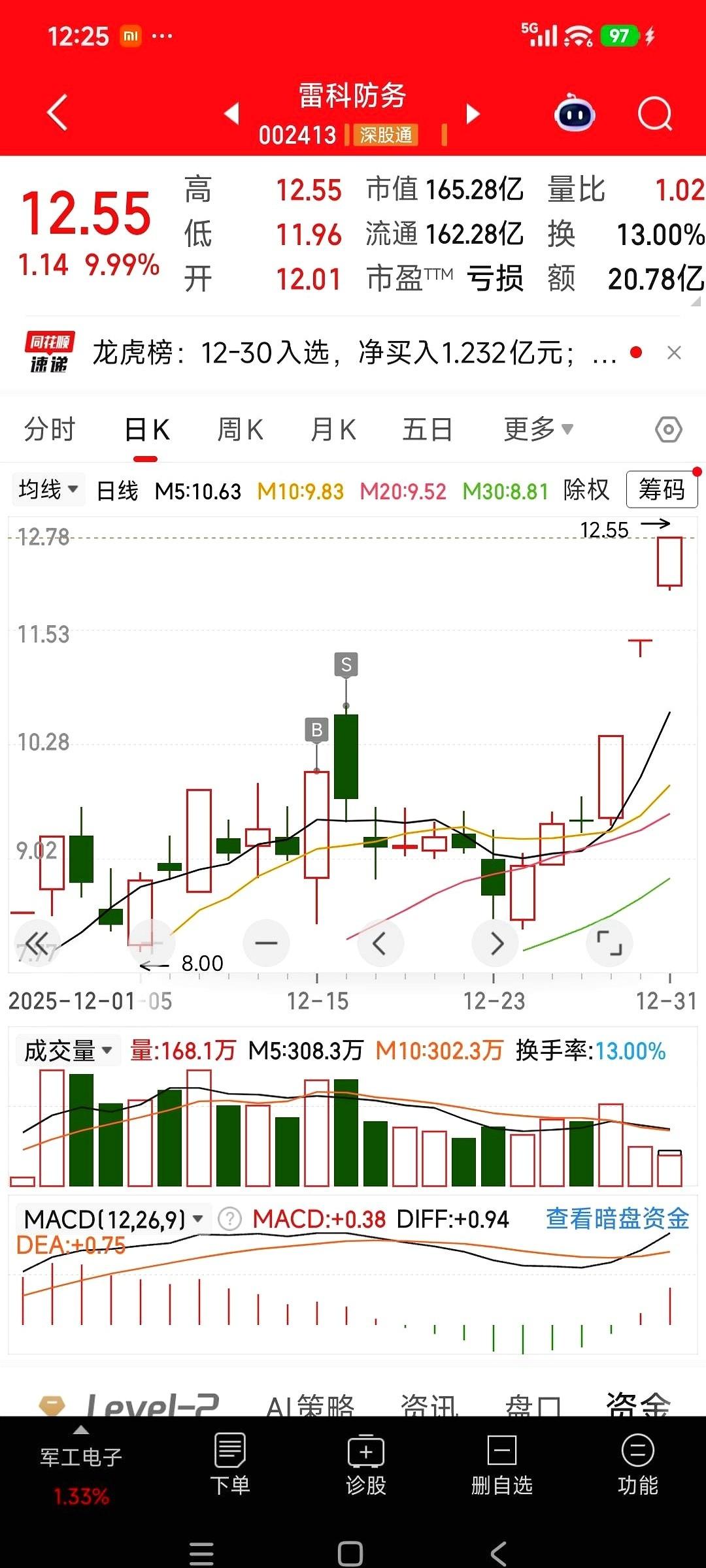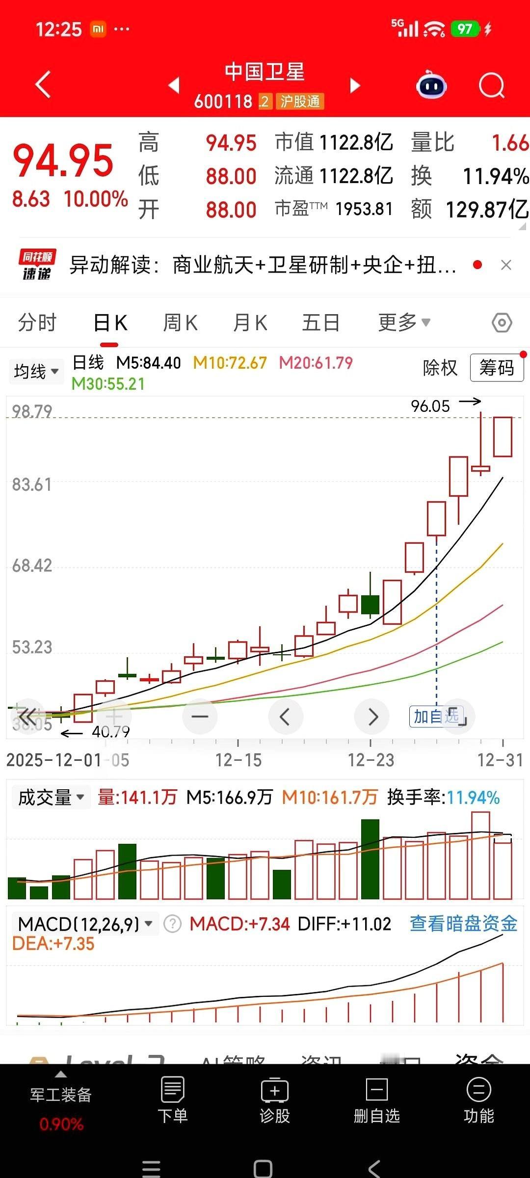 21个亿的雷达订单砸下来的时候,整个市场都安静了。 真的,一瞬间,那些天天讲故事、画大饼的都显得特别苍白。 雷科防务这哥们,平时闷不吭声,一出手就是西部战区的硬核大单。KLJ-7A雷达,PL-17导弹发射机,这都不是PPT上的东西,是真家伙,是要拿去捍卫边疆的。虽然前三季度账面还亏着,但手里攥着这种级别的合同,心里能不踏实吗?这叫家有余粮,心中不慌。 再看看其他人。 锋龙,五连板,确实猛。被优必选看上,一脚踹进了人形机器人的风口。股价上天,市盈率147倍。说实话,我有点恐高。这就像坐上了火箭,风景是好,但你总得想想燃料够不够,落地稳不稳。故事很性感,但得靠实打实的整合和业绩来兑现。 泰尔就更有意思了,像个“概念百宝箱”。工业机器人、锂电回收、商业航天,哪个热就往哪个上贴。华为、特斯拉,朋友圈也都是大佬。可一看财报,亏着五千多万。这就有点尴尬了,朋友再多,也得自己能挣钱啊。风口上的猪,风停了摔得最惨。 最后是中国卫星。 这已经不是一个公司了,这是“国家队”在下的一盘大棋。海南那个超级工厂,年底投产,一年能造1000颗卫星。你没听错,是1000颗。承接的是国家星网的大盘子,是万亿级的赛道。这种选手,看的不是一两天的涨跌,看的是未来十年的国运。 说白了,年底这波行情,就是一场大戏。 有靠硬核实力打天下的,有靠豪门联姻改命的,有靠一身光环闯江湖的,还有直接代表国家意志的。 热闹是真热闹,但烟花散了,你手里剩下的是金子,还是灰尘?