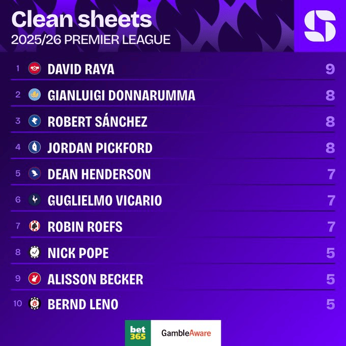 虎扑01月02日讯在英超第19轮比赛过后,英超的门将零封榜也再度更新。