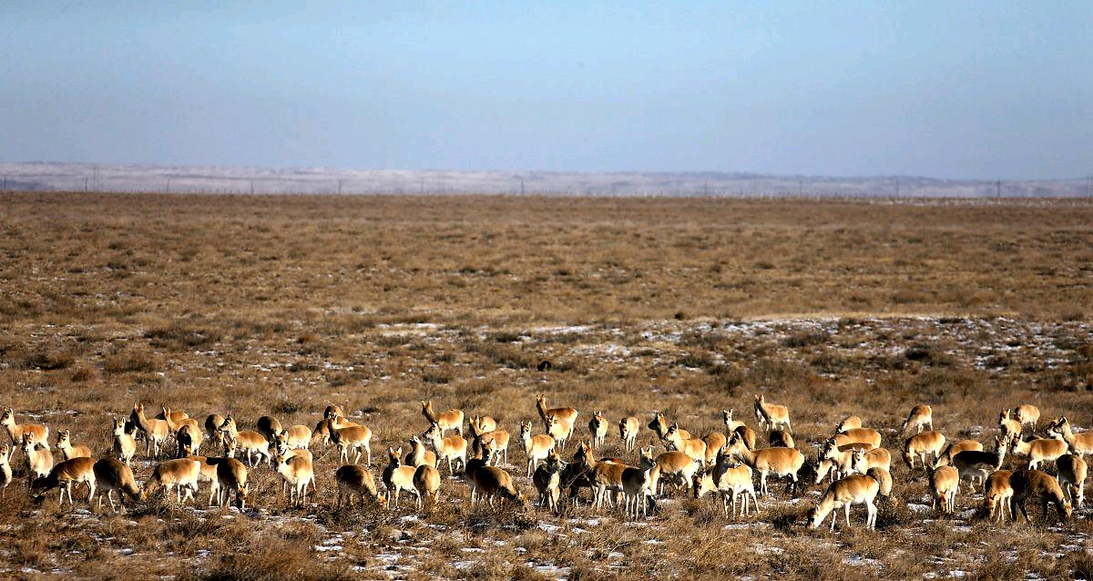 上万只黄羊“偷渡”到我国,在蒙古国连30厘米积雪都刨不开,到了内蒙古却集体“蹭吃