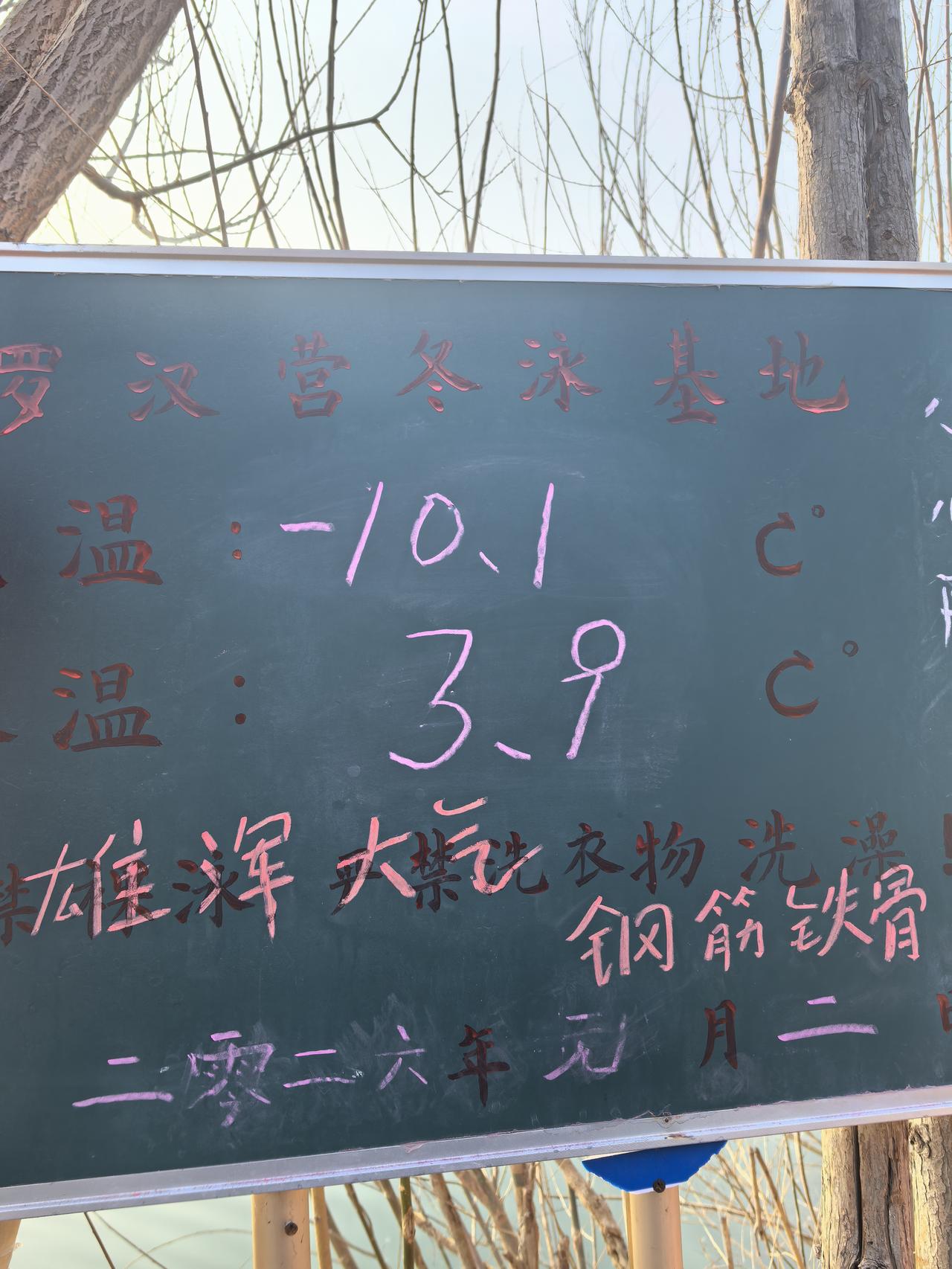 今天下午,一位76岁的老爷子,曾经于1969年参加过中苏“珍宝岛”战役的陈老前辈,在营地有感于冬泳人的精神,不由地在黑板上写下了“雄浑大气,钢筋铁骨”八个大字!