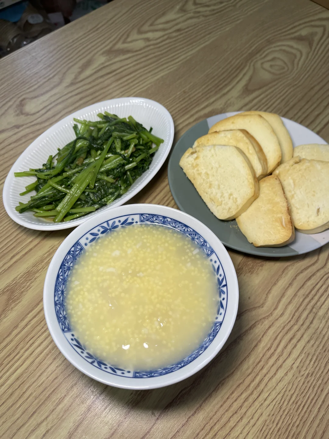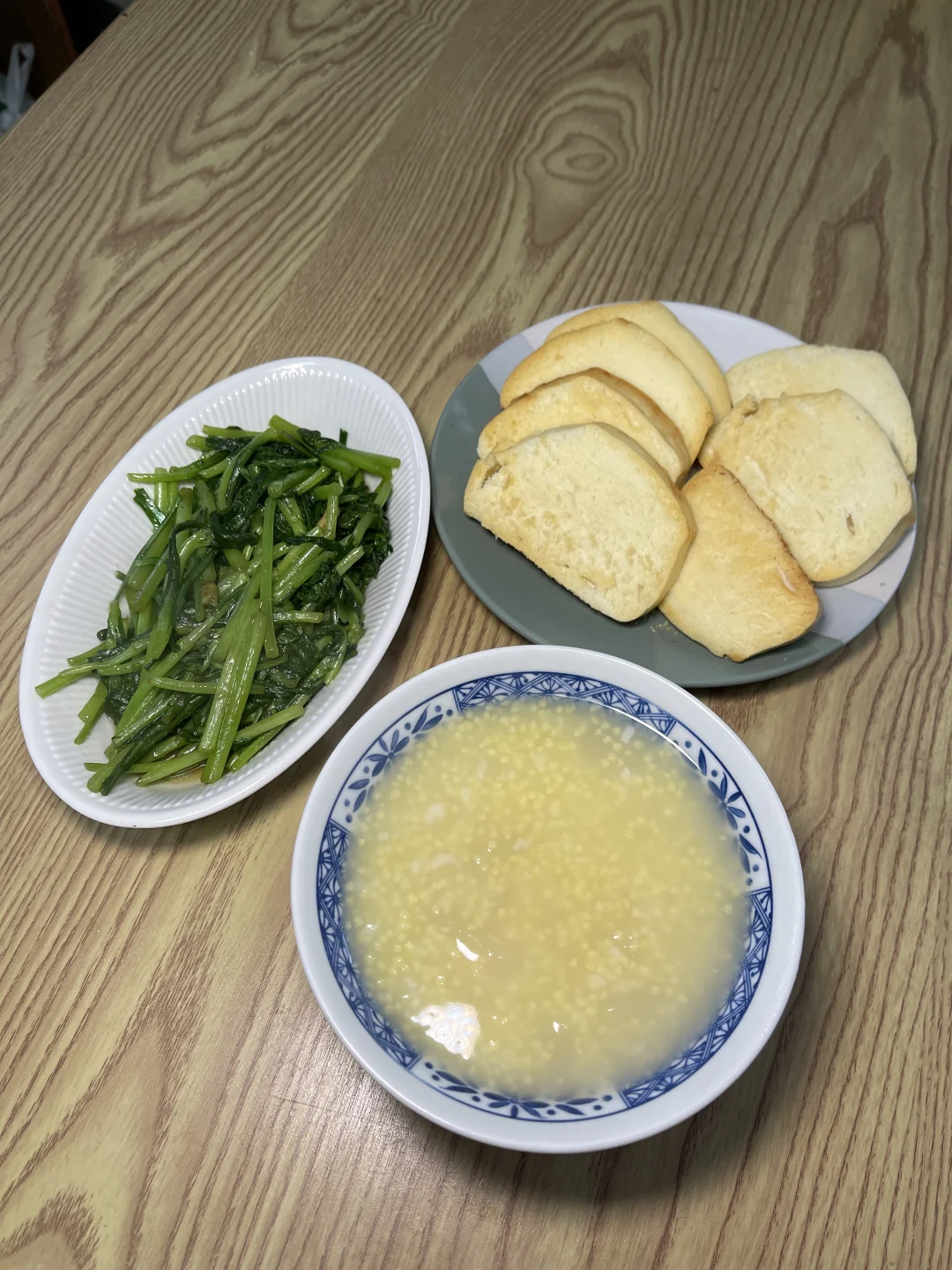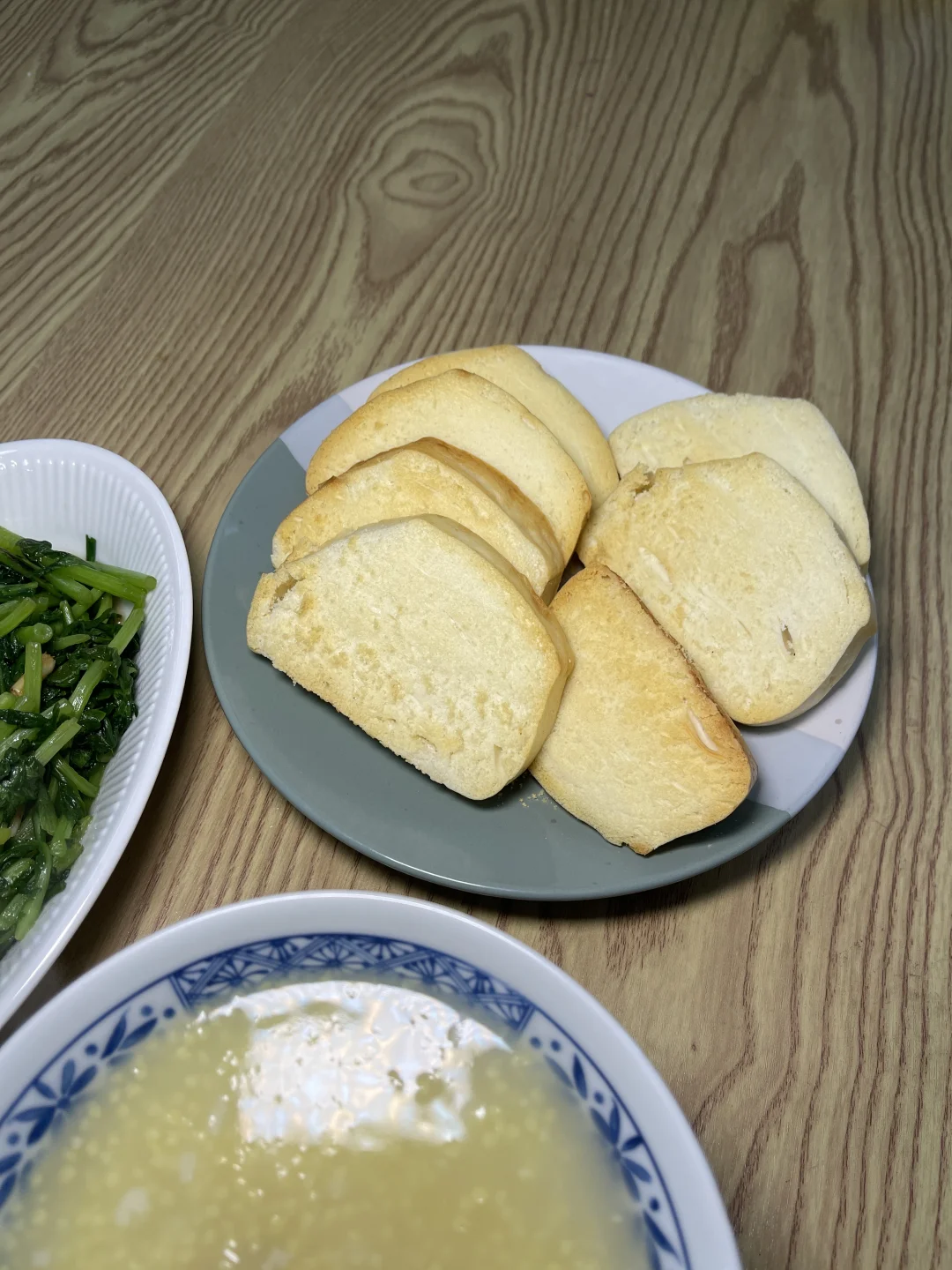 嗨👋互联网闺蜜们 我是热爱食养文化的樂妈👩 自学《黄帝内经》 挑战和宝宝一起中医食养好月卑胃100天打卡✅ 养胃早餐:雪梨小米粥➕清炒茼蒿菜➕烤馒头 今日状态✅ 🟢胃:正常 🟡脾:调理中 饮食干净了,脾胃好舒服[害羞R] 闺蜜们,胃炎好些了吗? 胃不舒服时,超推荐烤馒头,做法简单 1.白馒头蒸熟 2.放凉切片 3.放入烤箱 4.150度烤10分钟 5.单面变黄就可以吃啦