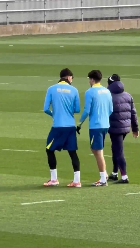 VíctorNavarro在社交媒体上传了弗里克和这两名球员一起走上训练场的视频,并配文写道:“在德比战前的最后一次训练中,弗里克、库巴西和伯纳尔踏上训练场。”