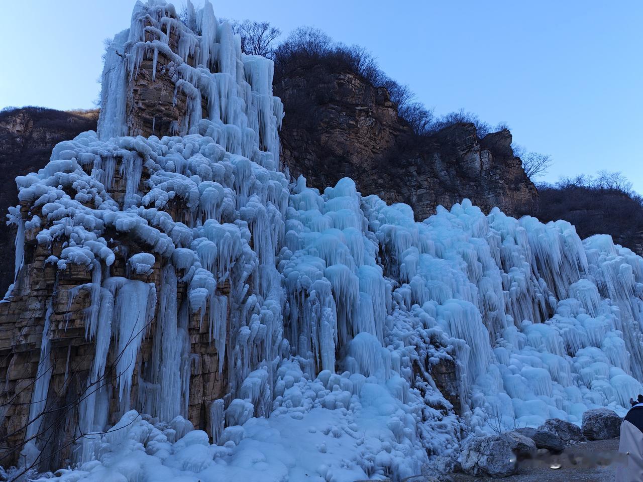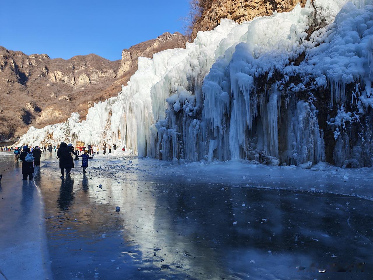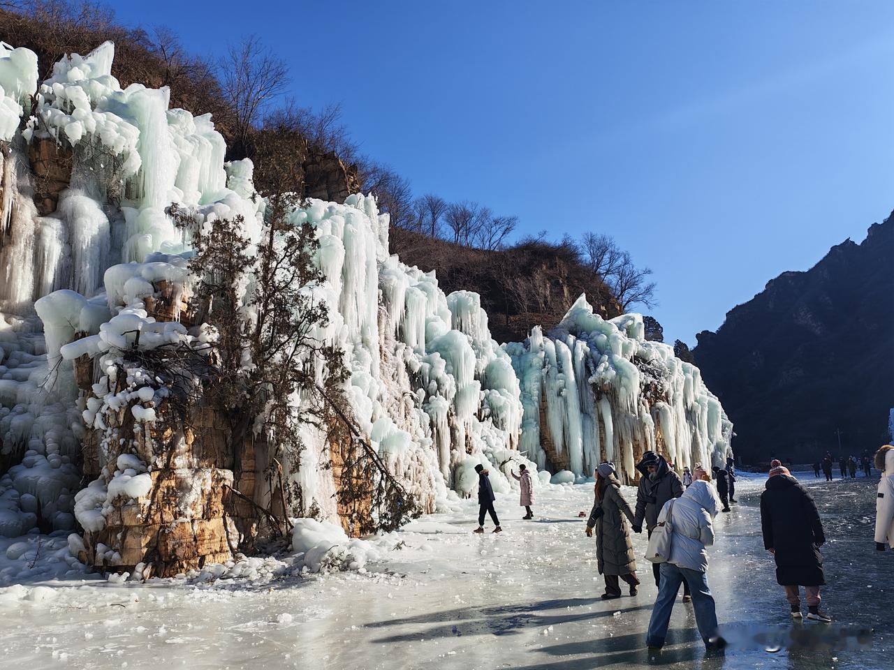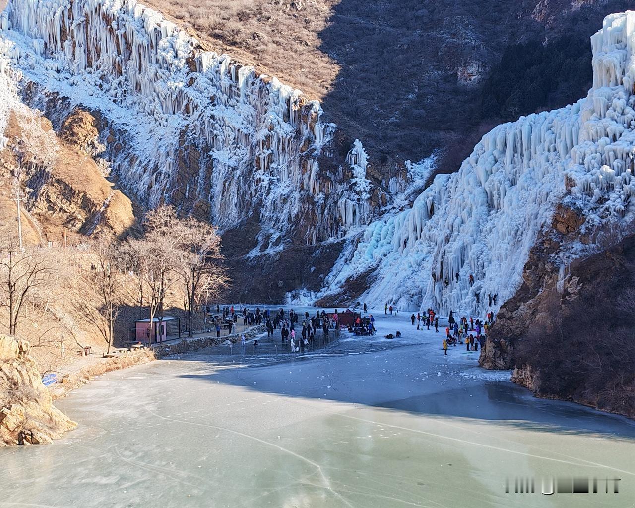 虎峪风景区位于北京市昌平区,冬天的虎峪风景区别有一番风味。今天亲临景区,十分震撼。景区内有8处总面积超2万平方米的冰瀑景观,巨大的冰瀑顺着陡峭山壁垂挂而下,层层叠叠的冰柱、冰棱、冰壁形态各异,在阳光的映照下闪烁着蓝白相间的光芒。今天天气晴好,拍下一组照片,视觉就不一样吧! -