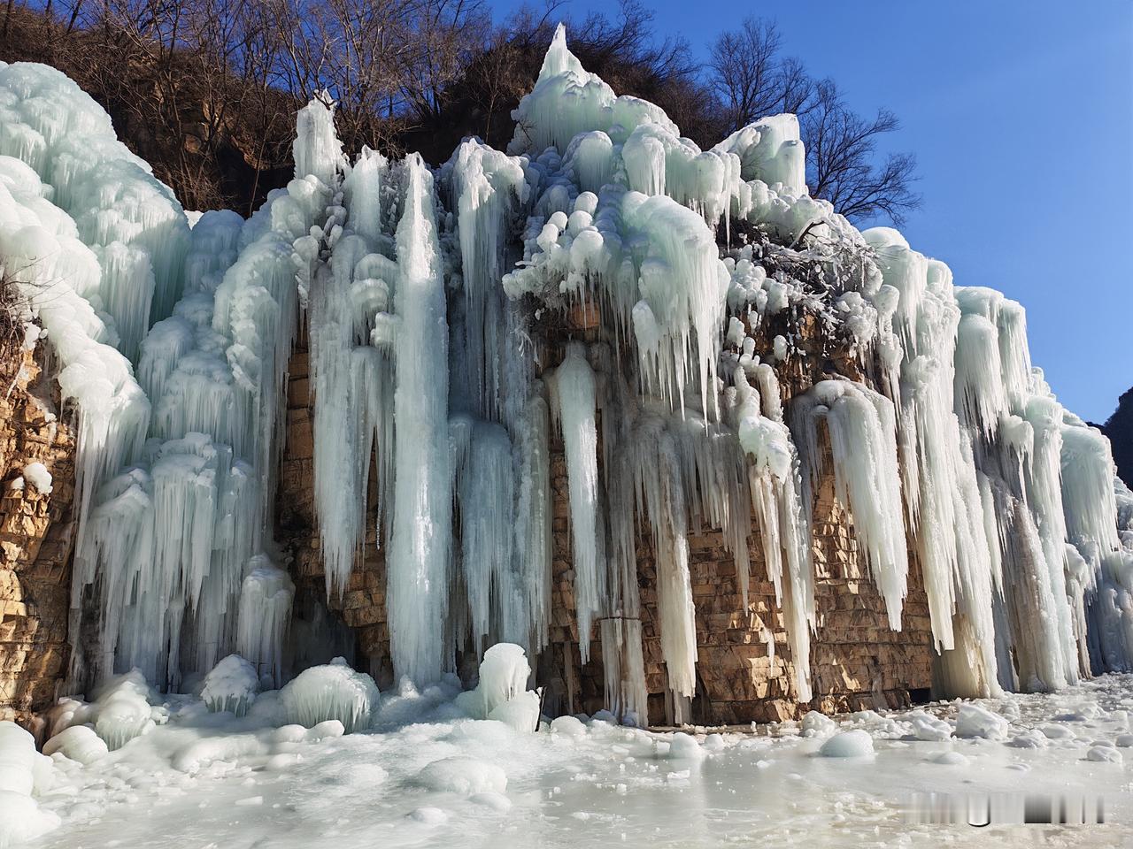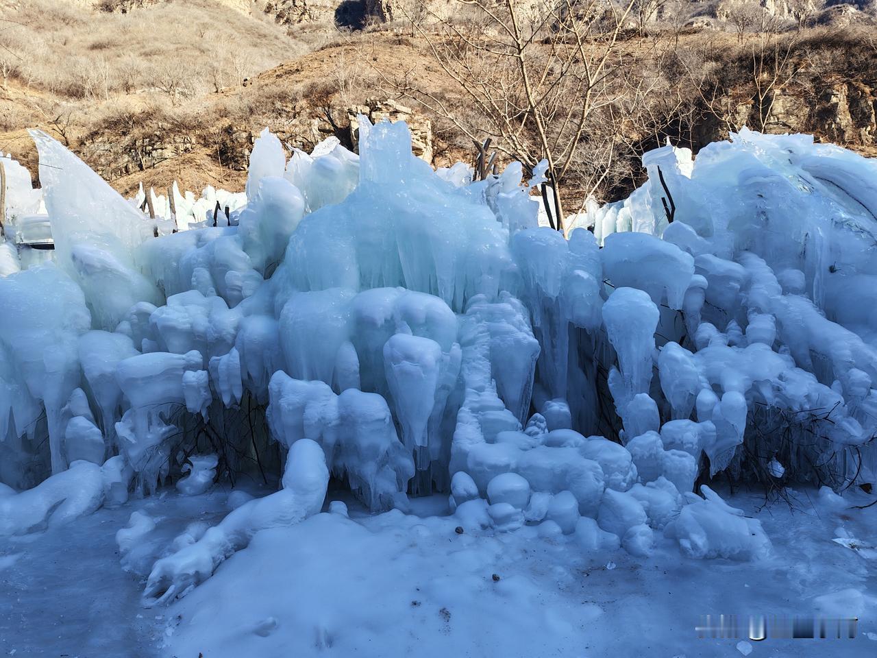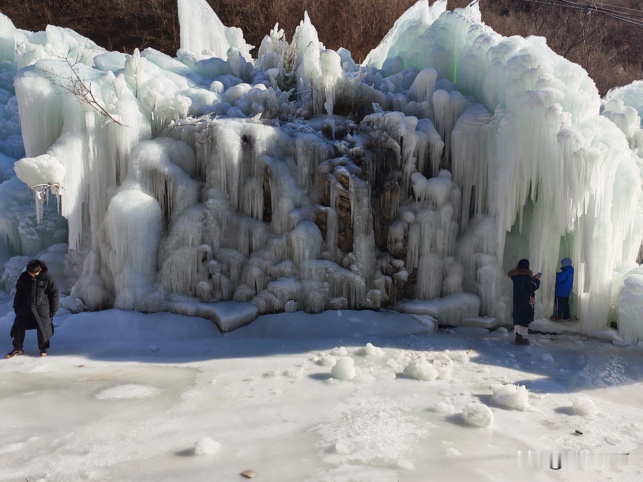 虎峪风景区位于北京市昌平区,冬天的虎峪风景区别有一番风味。今天亲临景区,十分震撼。景区内有8处总面积超2万平方米的冰瀑景观,巨大的冰瀑顺着陡峭山壁垂挂而下,层层叠叠的冰柱、冰棱、冰壁形态各异,在阳光的映照下闪烁着蓝白相间的光芒。今天天气晴好,拍下一组照片,视觉就不一样吧! -